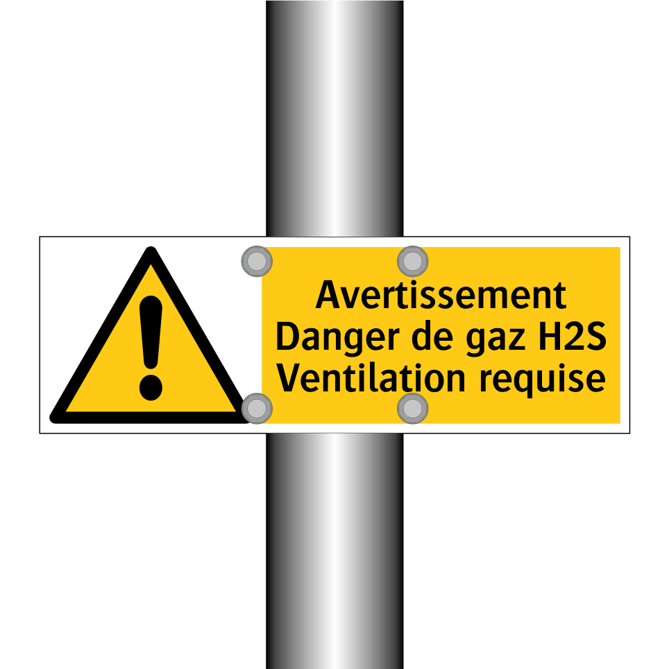 Panneau d'avertissement avec le texte : "Avertissement Danger de gaz H2S Ventilation requise"