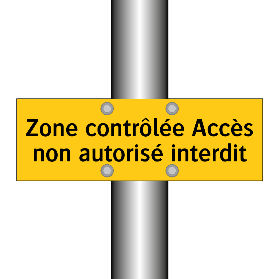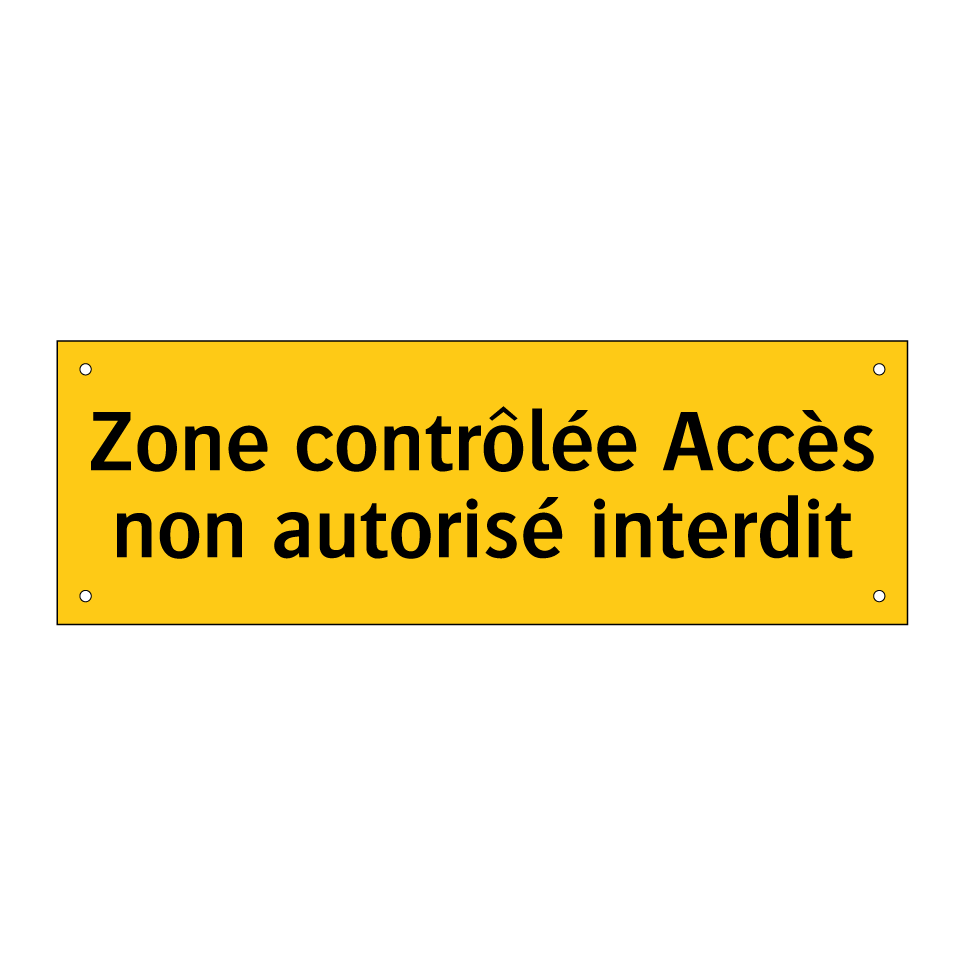 Panneau d'avertissement avec le texte : "Zone contrôlée Accès non autorisé interdit"