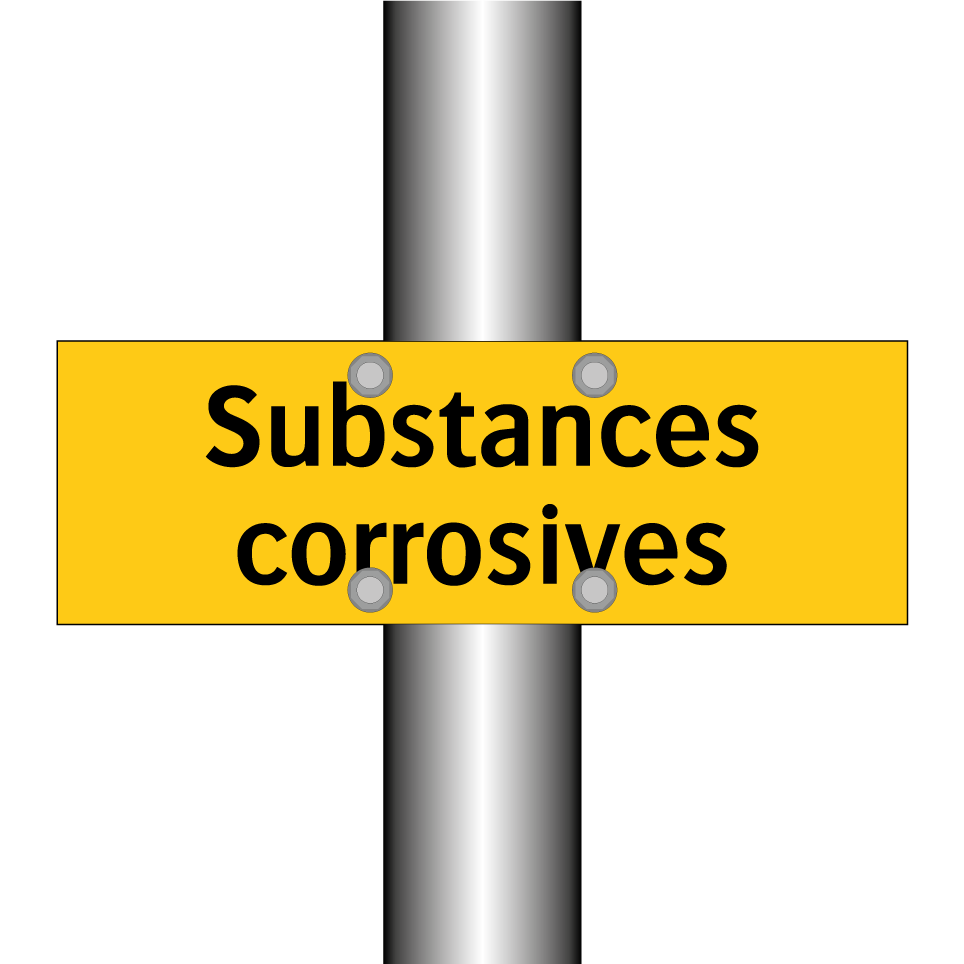 Panneau d'avertissement avec le texte : "Substances corrosives"