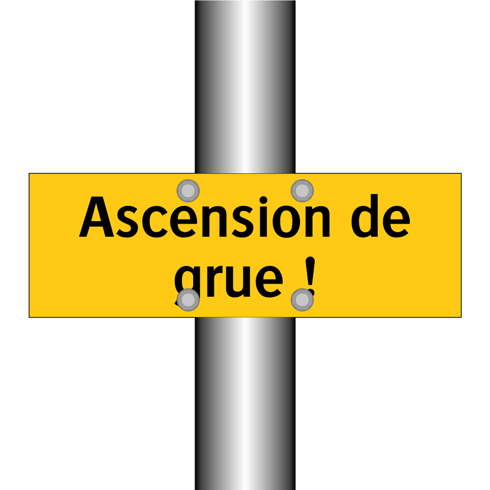 Panneau d'avertissement avec le texte : "Ascension de grue !"