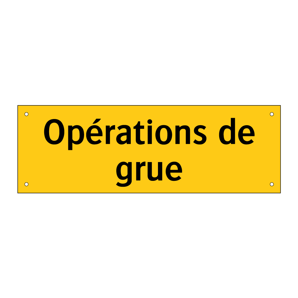 Panneau d'avertissement avec le texte : "Opérations de grue"