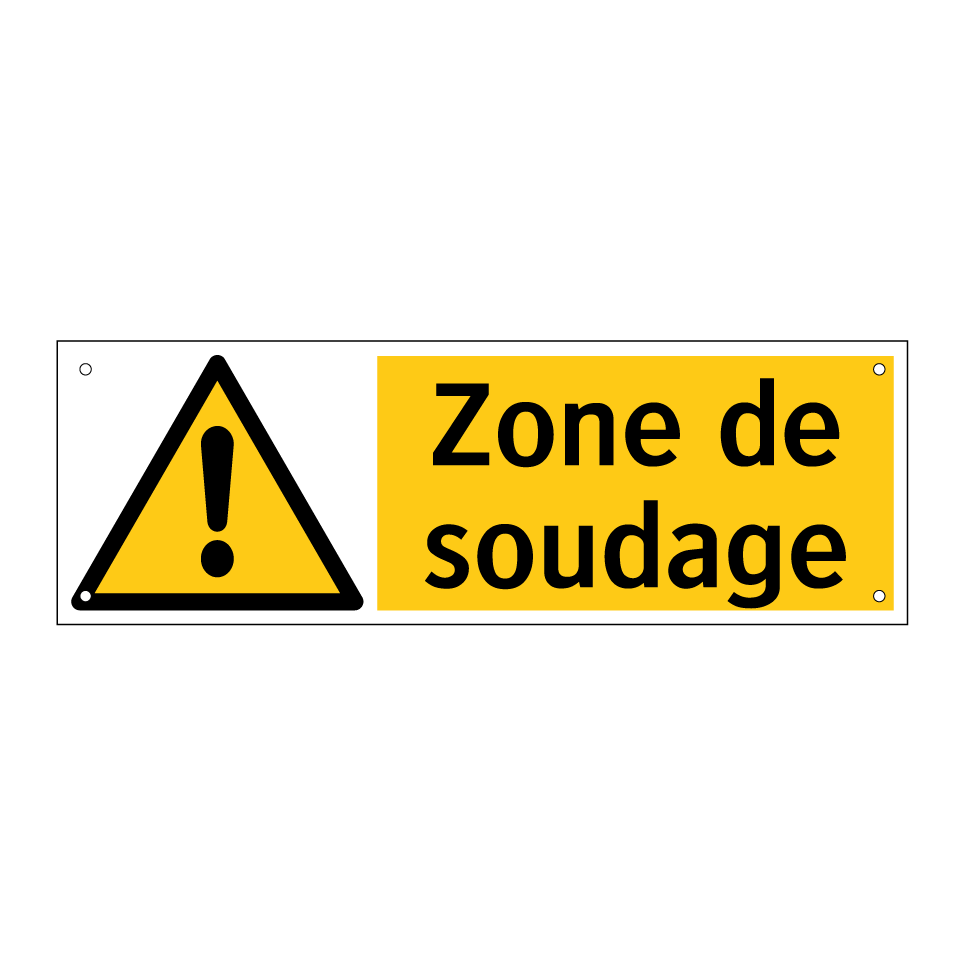 Panneau d'avertissement avec le texte : "Zone de soudage"