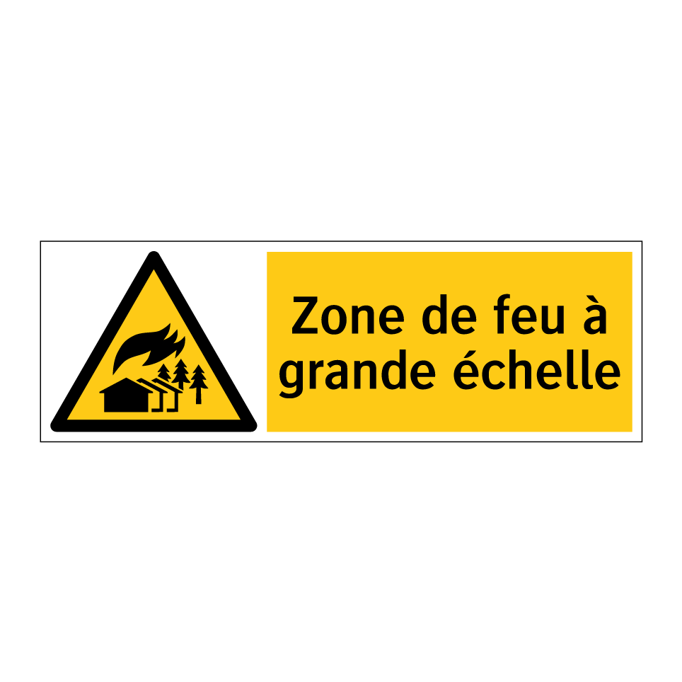 Panneau d'avertissement avec le texte : "Zone de feu à grande échelle"