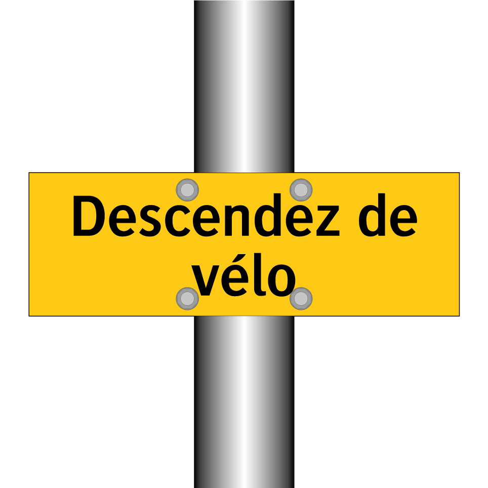 Panneau d'avertissement avec le texte : "Descendez de vélo"