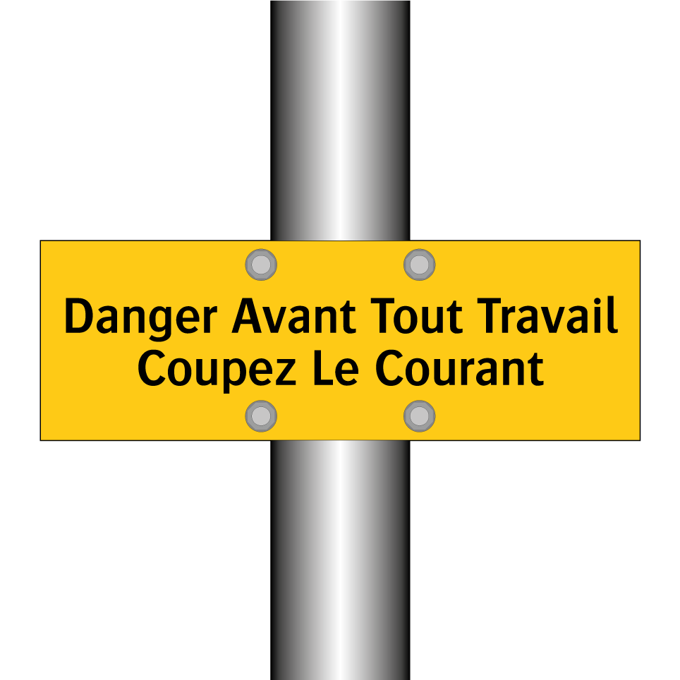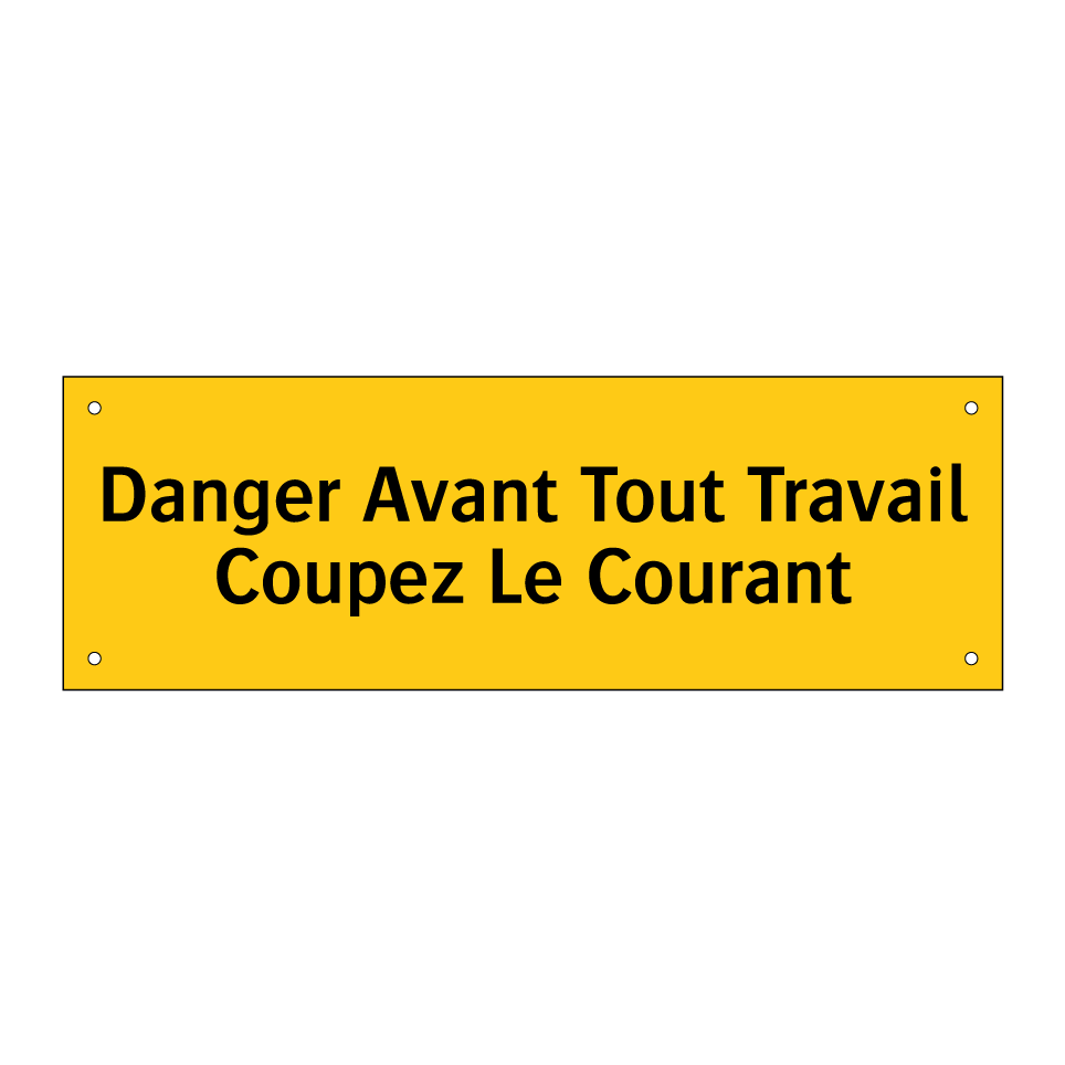 Panneau d'avertissement avec le texte : "Danger Avant Tout Travail Coupez Le Courant"
