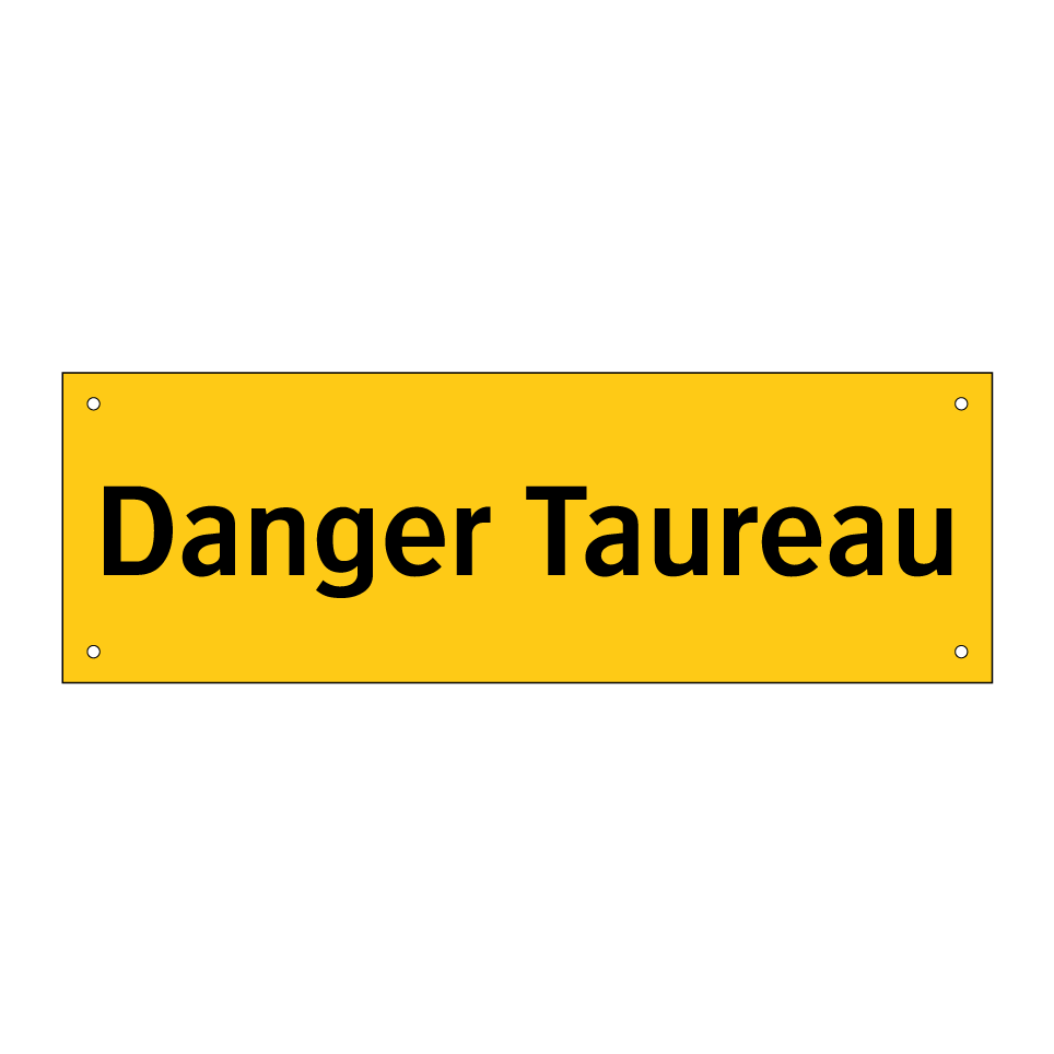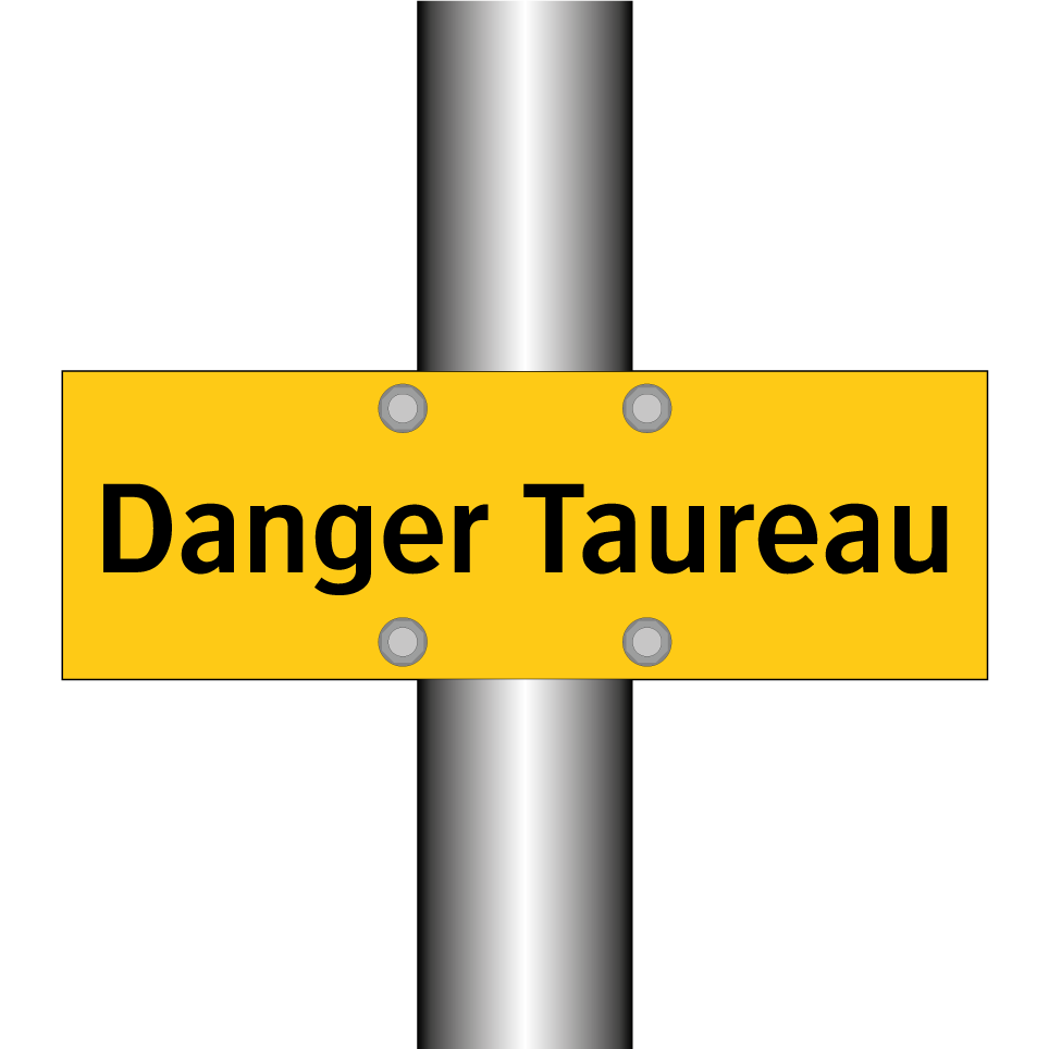 Panneau d'avertissement avec le texte : "Danger Taureau"