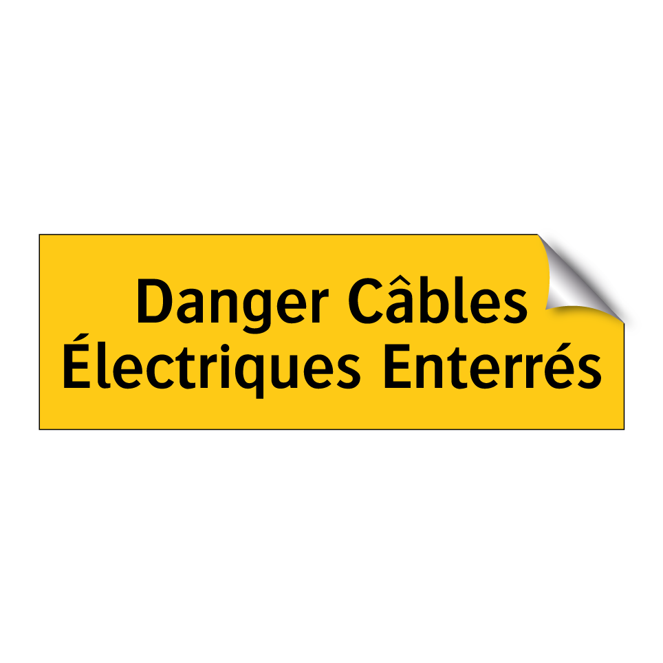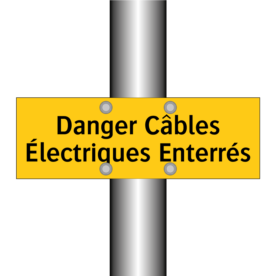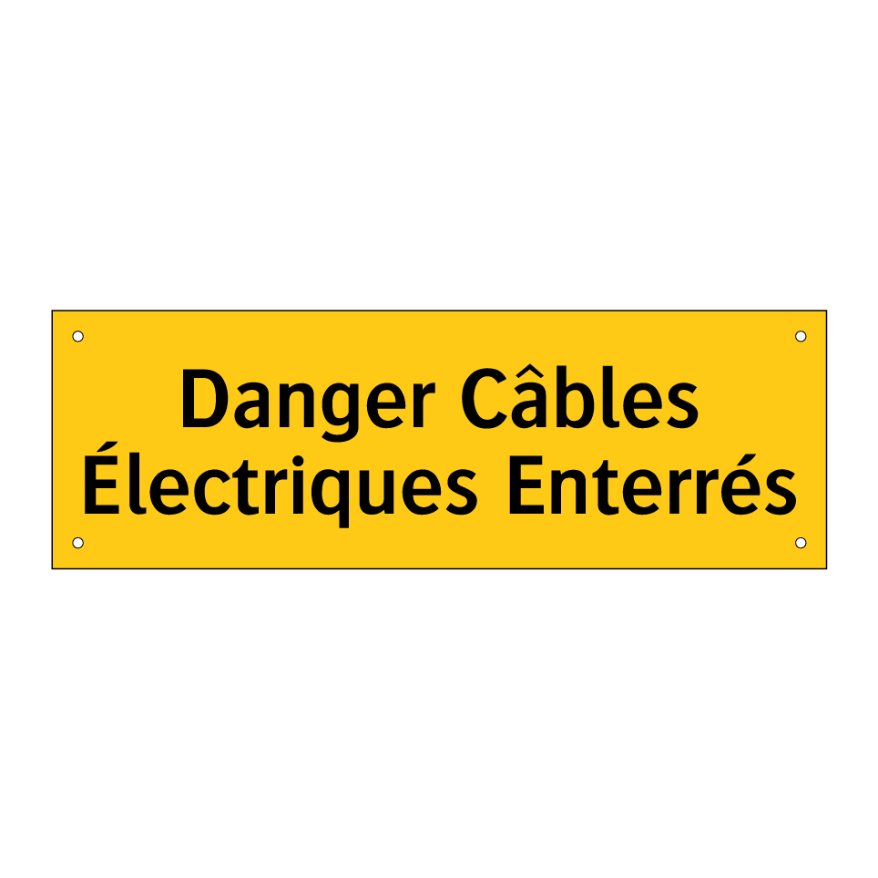 Panneau d'avertissement avec le texte : "Danger Câbles Électriques Enterrés"