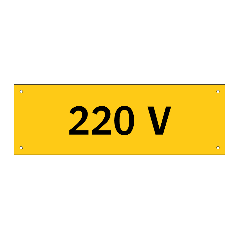 Panneau d'avertissement avec le texte : "220 V"