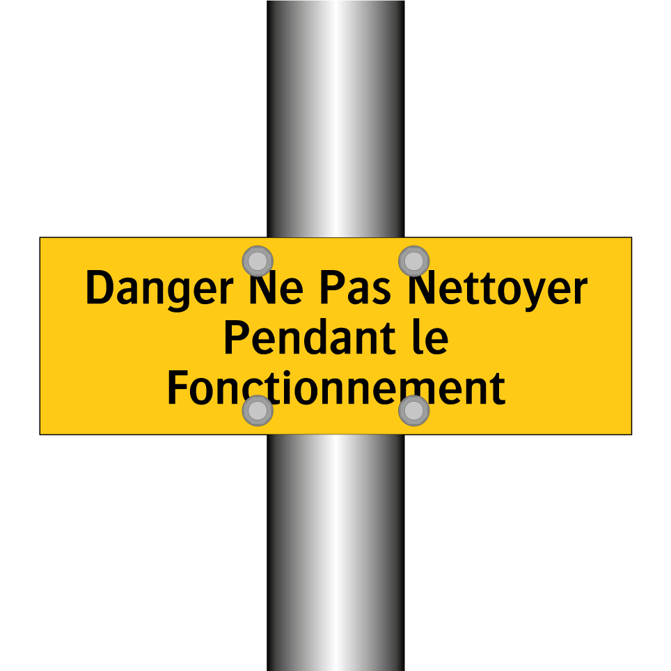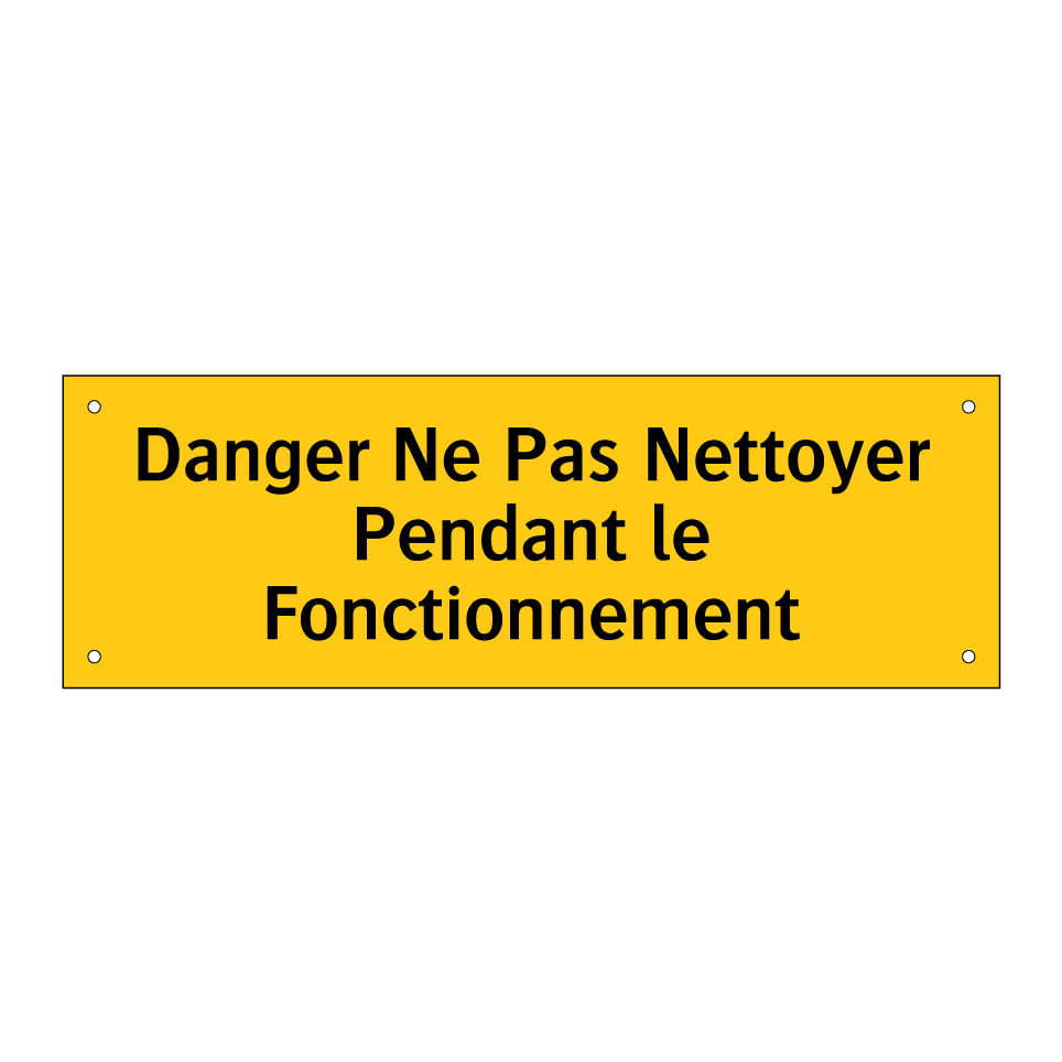Panneau d'avertissement avec le texte : "Danger Ne Pas Nettoyer Pendant le Fonctionnement"