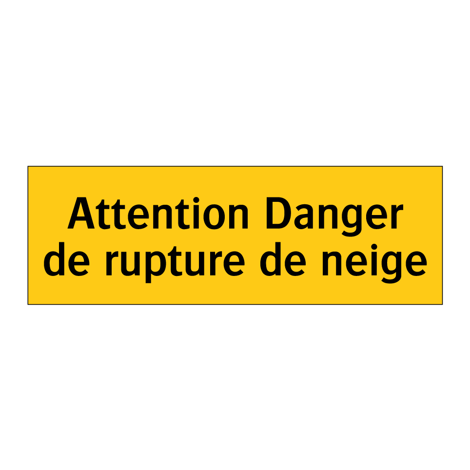 Panneau d'avertissement avec le texte : "Attention Danger de rupture de neige"