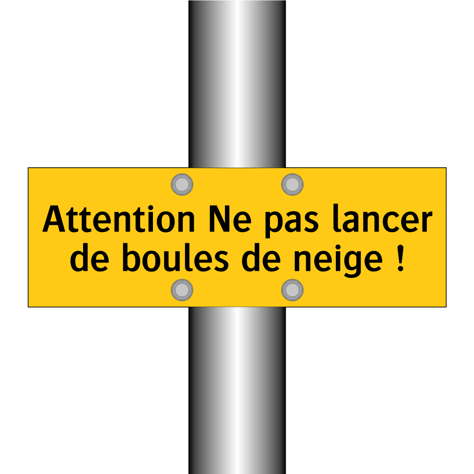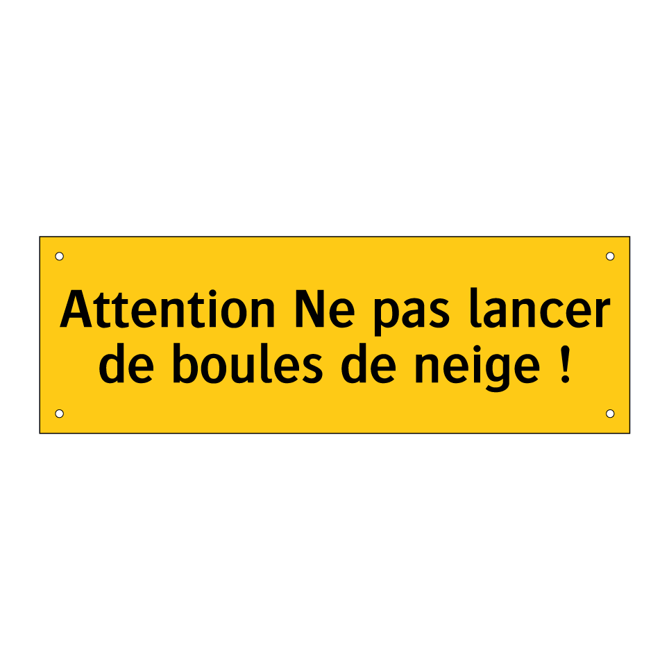 Panneau d'avertissement avec le texte : "Attention Ne pas lancer de boules de neige !"