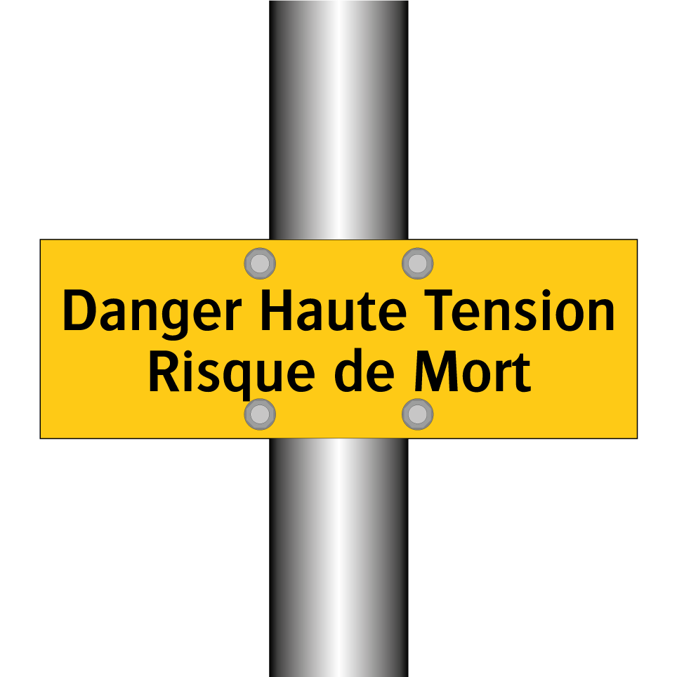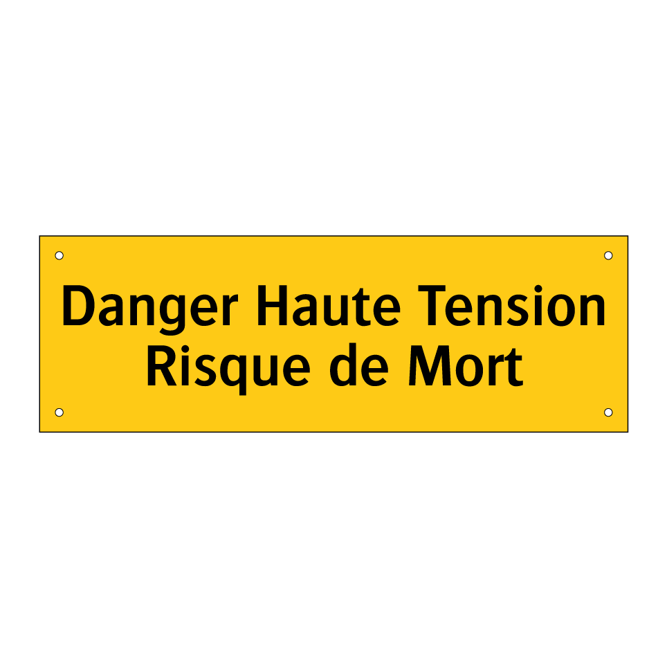 Panneau d'avertissement avec le texte : "Danger Haute Tension Risque de Mort"