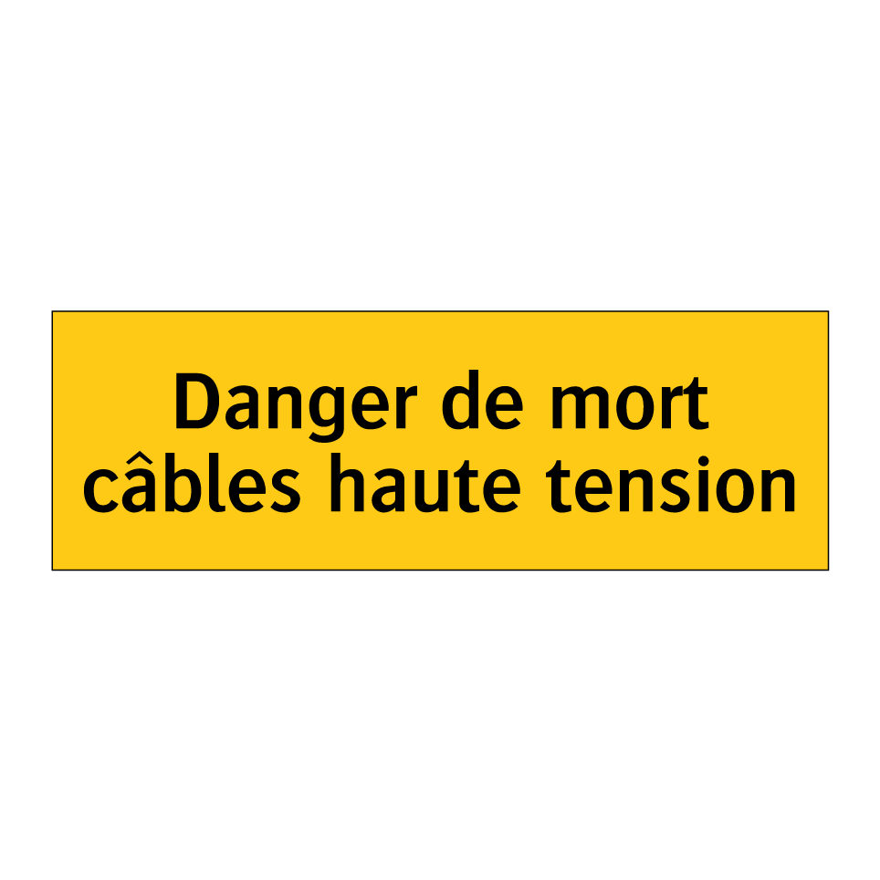 Panneau d'avertissement avec le texte : "Danger de mort câbles haute tension"