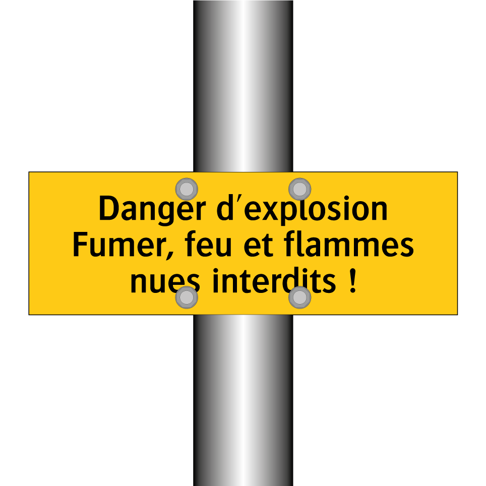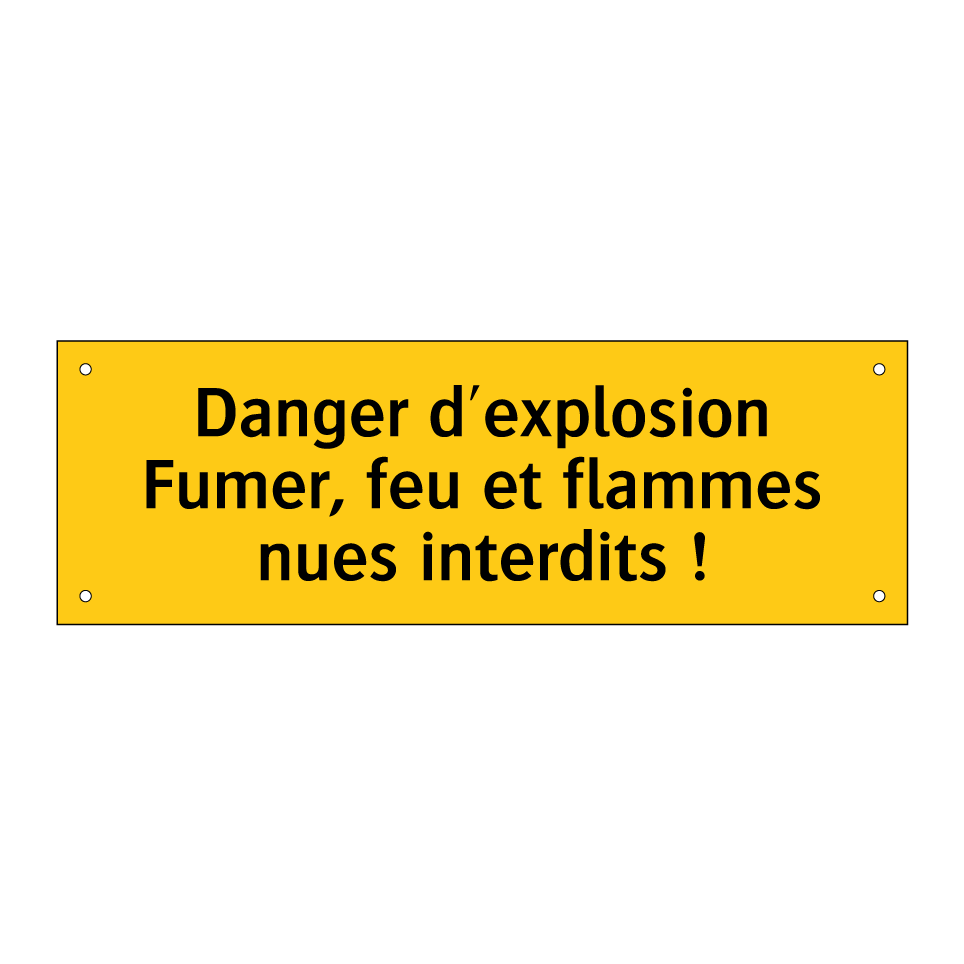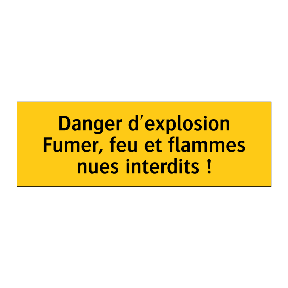 Panneau d'avertissement avec le texte : "Danger d'explosion Fumer, feu et flammes nues interdits !"