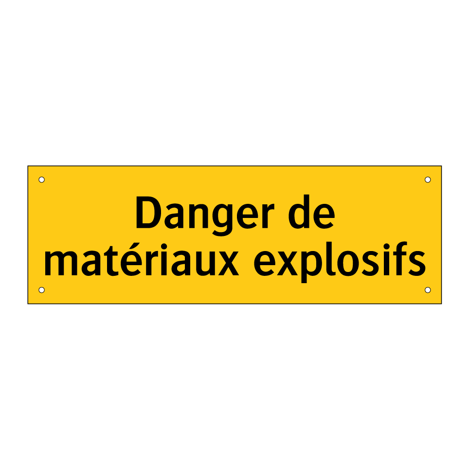 Panneau d'avertissement avec le texte : "Danger de matériaux explosifs"