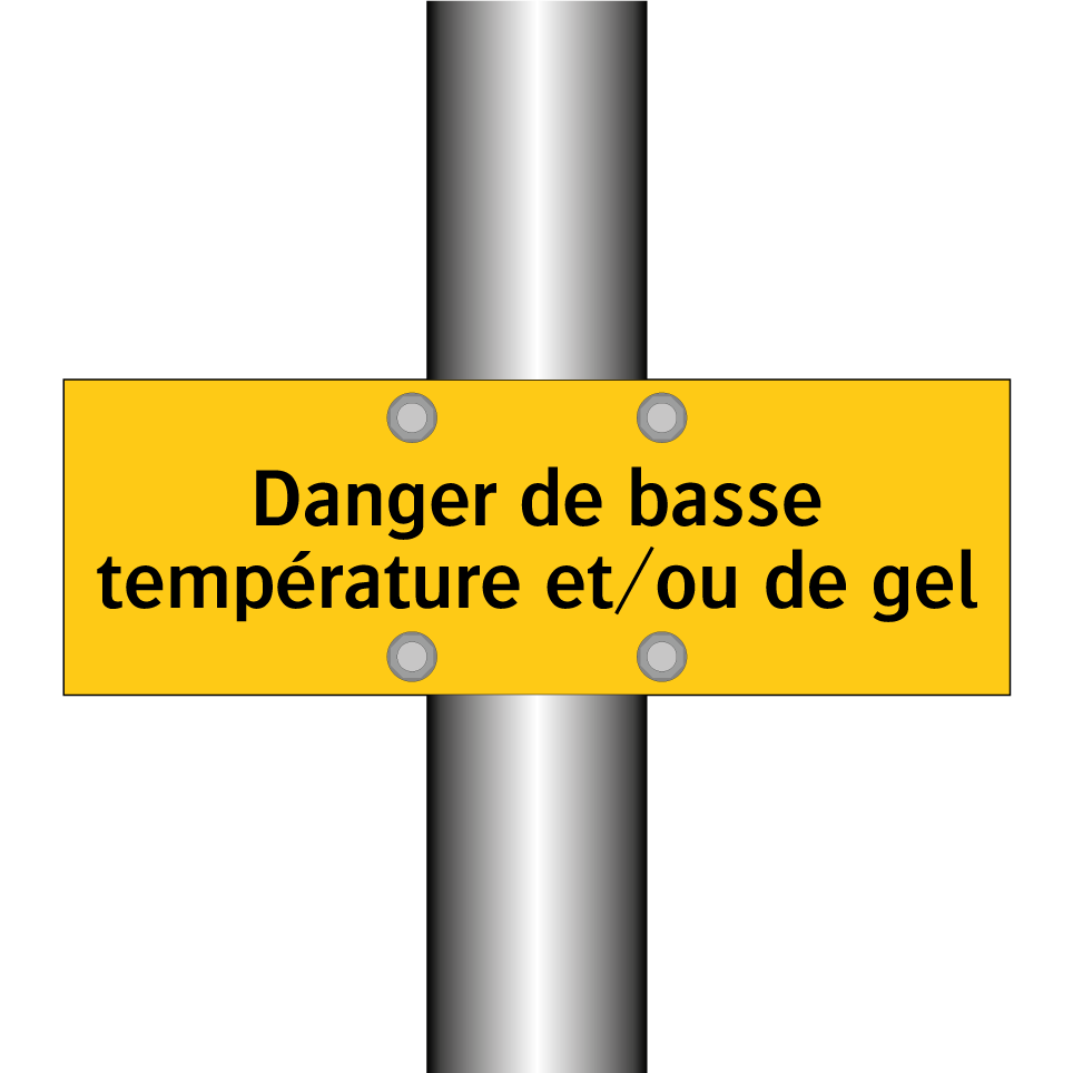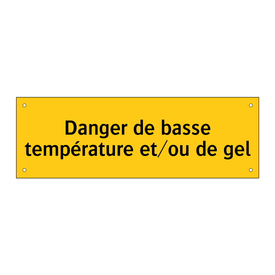 Panneau d'avertissement avec le texte : "Danger de basse température et/ou de gel"