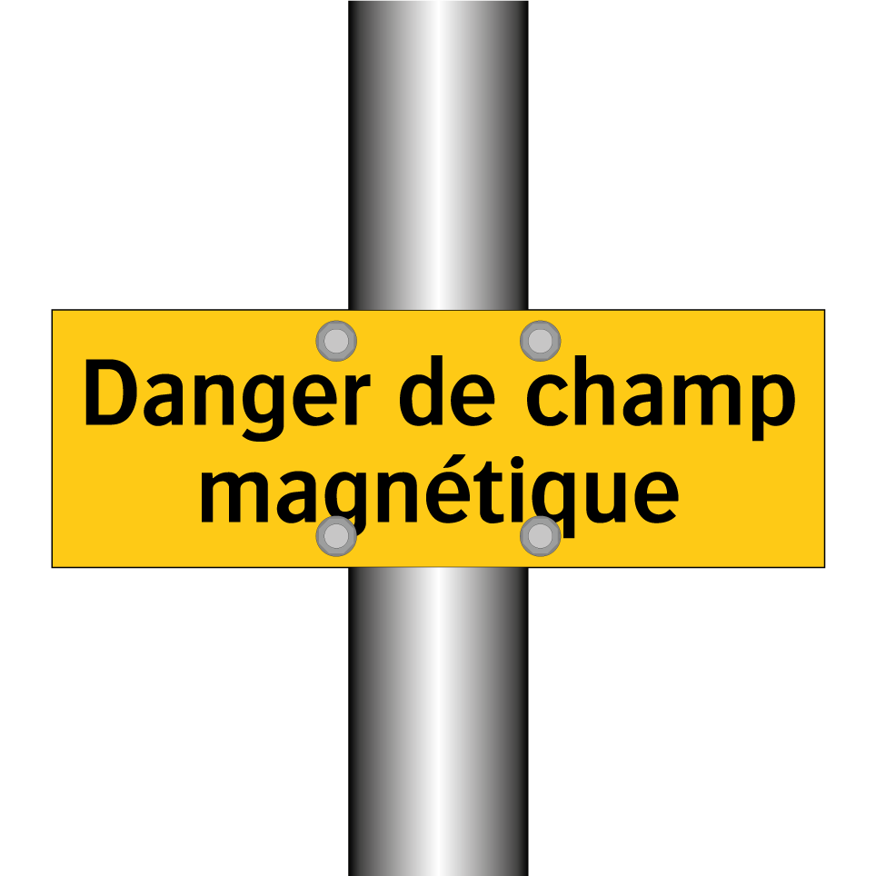 Panneau d'avertissement avec le texte : "Danger de champ magnétique"