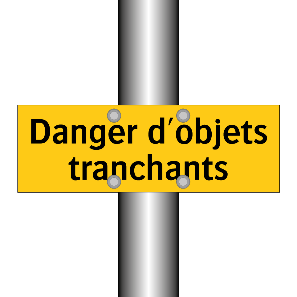 Panneau d'avertissement avec le texte : "Danger d'objets tranchants"