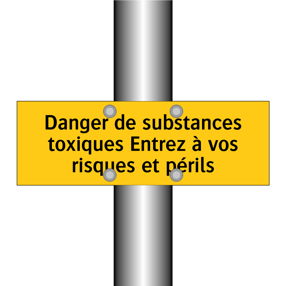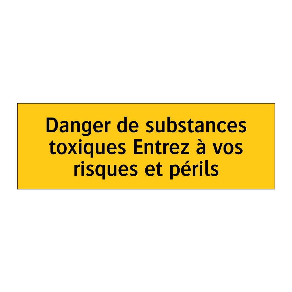 Panneau d'avertissement avec le texte : "Danger de substances toxiques Entrez à vos risques et périls"