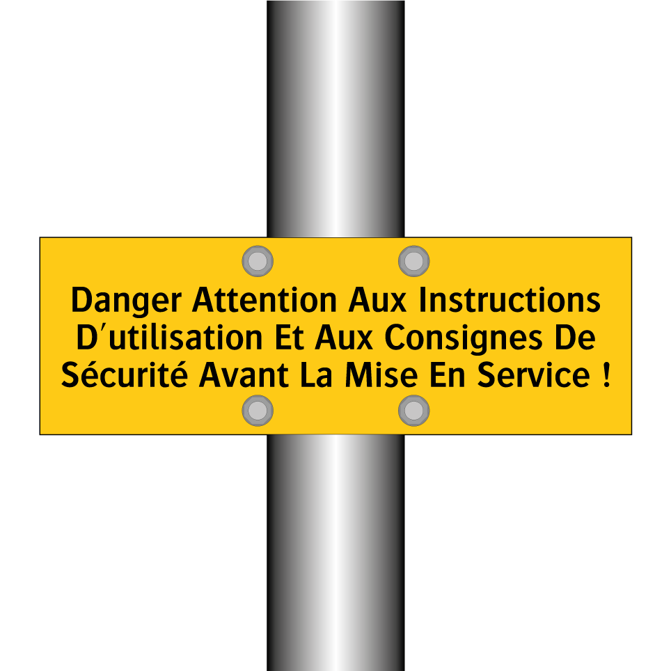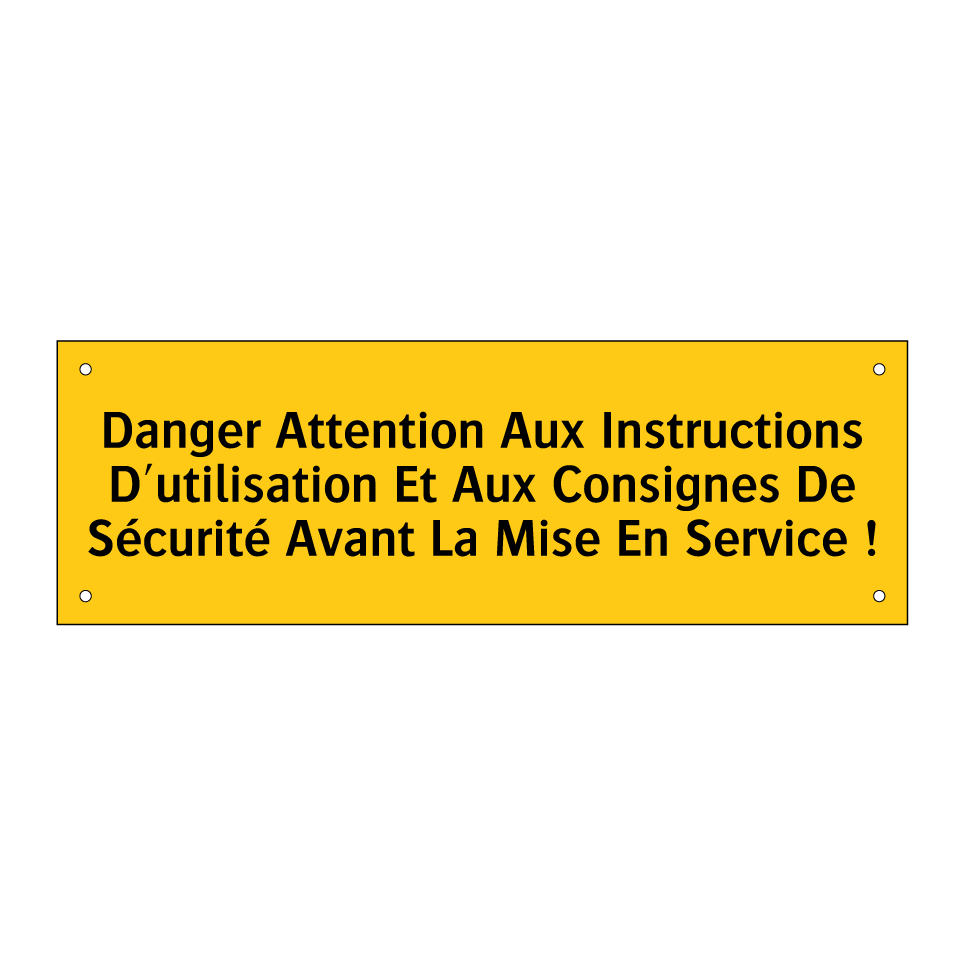 Panneau d'avertissement avec le texte : "Danger Attention Aux Instructions D'utilisation Et Aux Consignes De Sécurité Avant La Mise En Service !"
