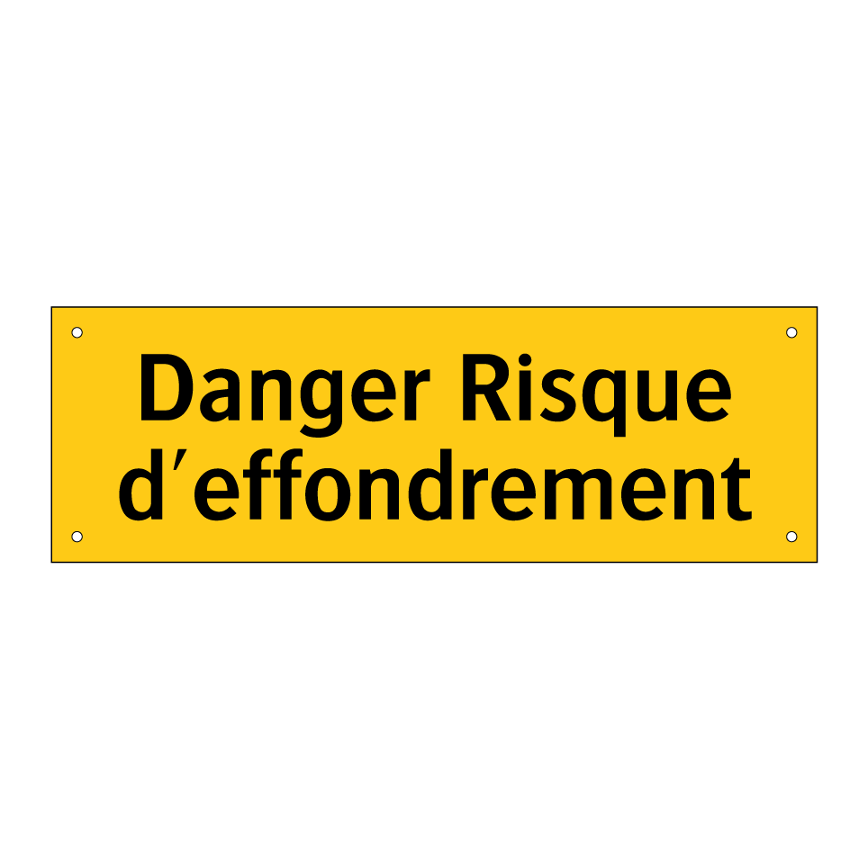 Panneau d'avertissement avec le texte : "Danger Risque d'effondrement"