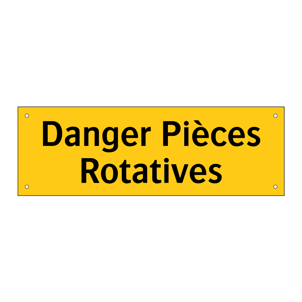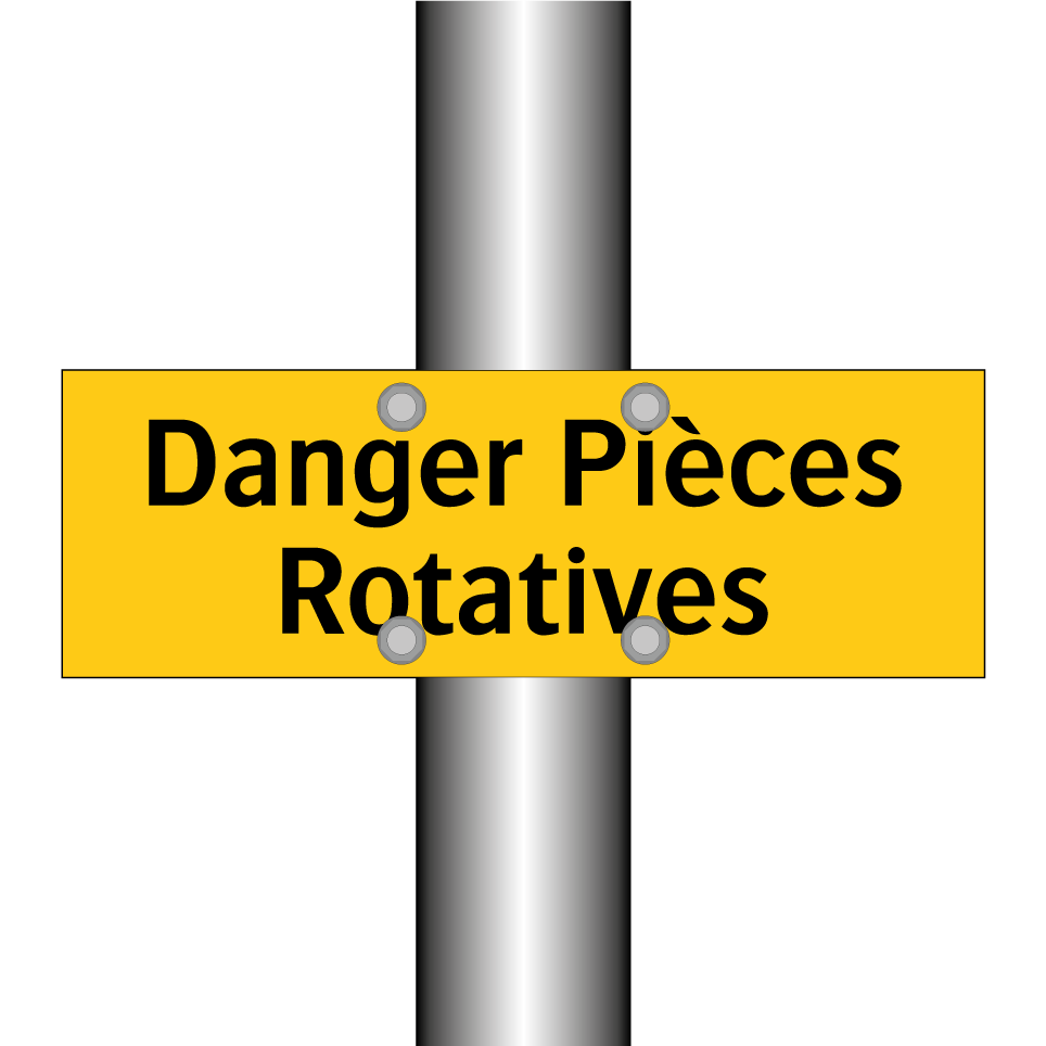 Panneau d'avertissement avec le texte : "Danger Pièces Rotatives"