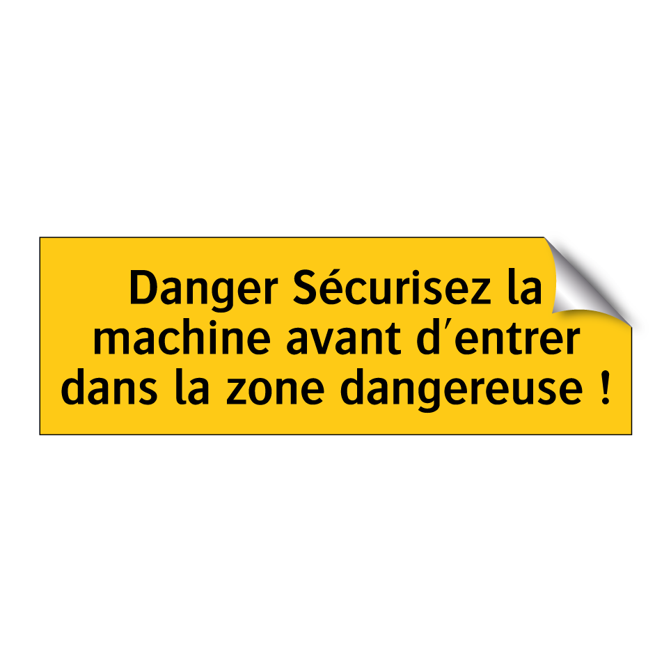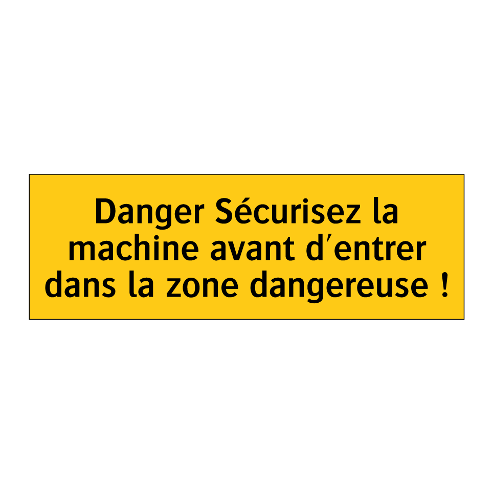 Panneau d'avertissement avec le texte : "Danger Sécurisez la machine avant d'entrer dans la zone dangereuse !"