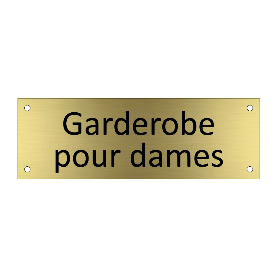 Cette enseigne élégante est idéale pour indiquer l'emplacement d'un vestiaire réservé aux dames. Elle trouve sa place dans des environnements variés tels que les hôtels, les restaurants ou les espaces événementiels. En guidant vos invitées vers un espace dédié, elle contribue à une organisation fluide et professionnelle. Installez-la à l'entrée d'un vestiaire ou à proximité des toilettes pour femmes afin d'assurer une signalisation claire et accueillante. Cette pancarte est un ajout raffiné qui améliore l'expérience des visiteurs en facilitant leur orientation.