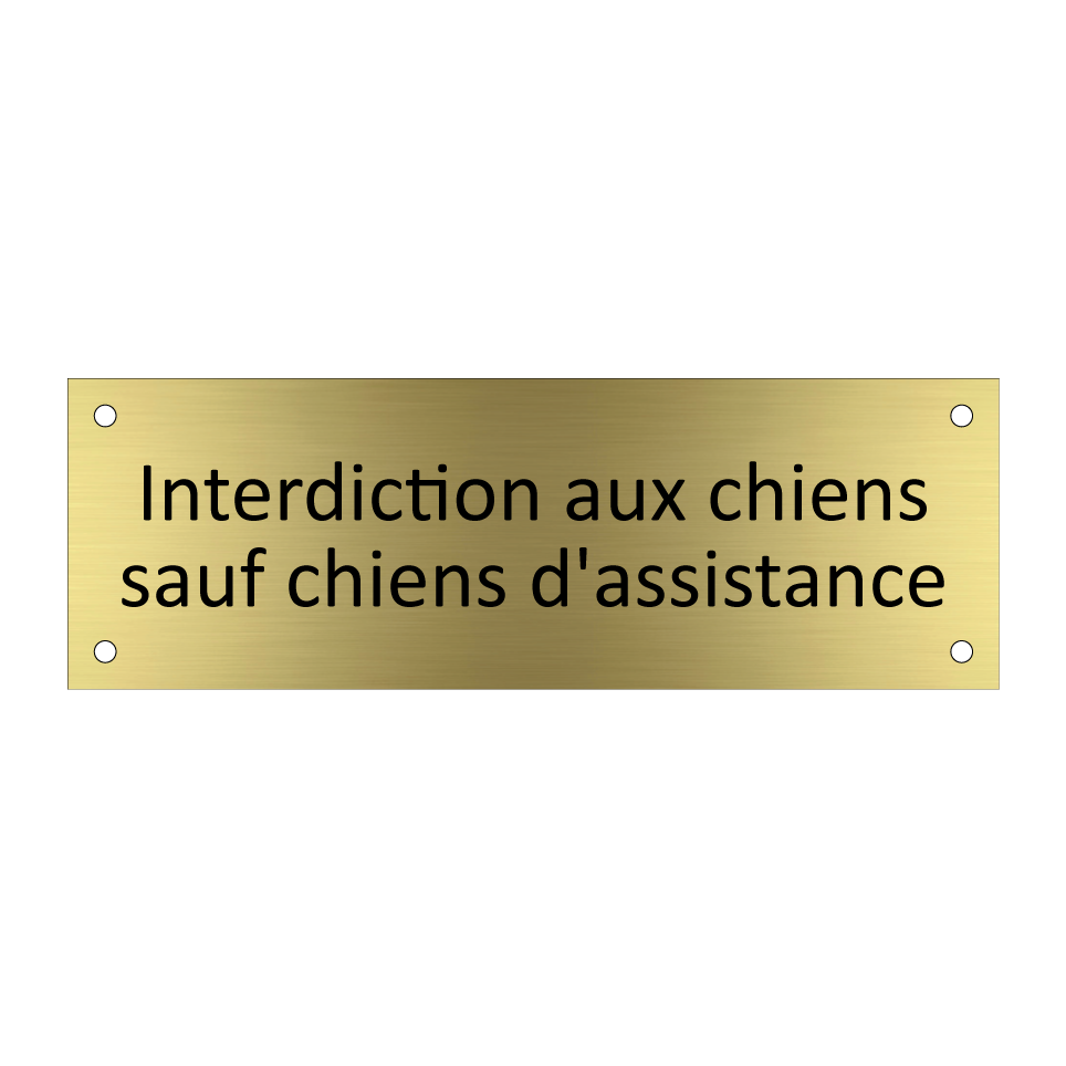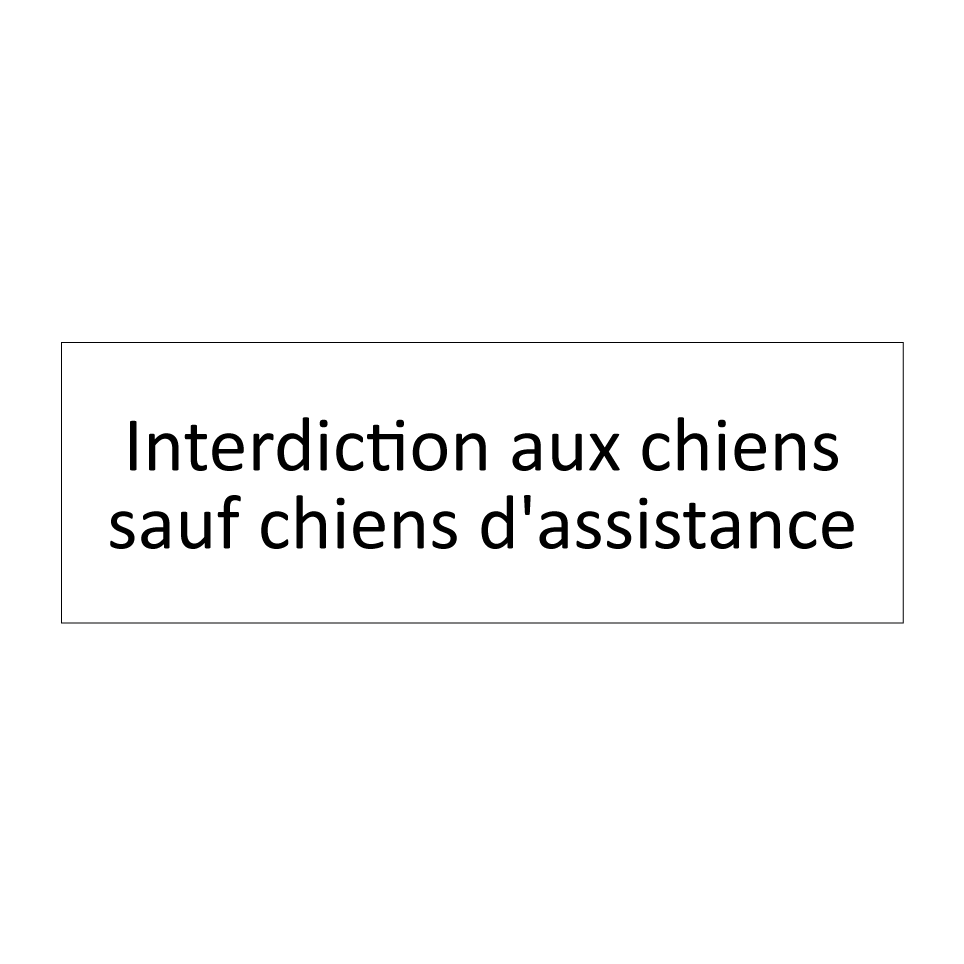 Panneau d'information avec le texte Interdiction aux chiens sauf chiens d'assistance.