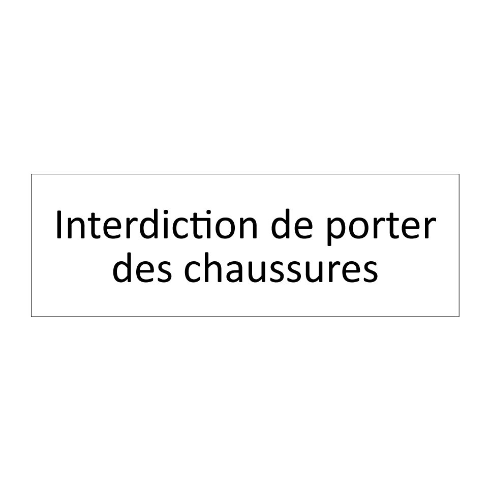 Panneau d'information avec le texte Interdiction de porter des chaussures.