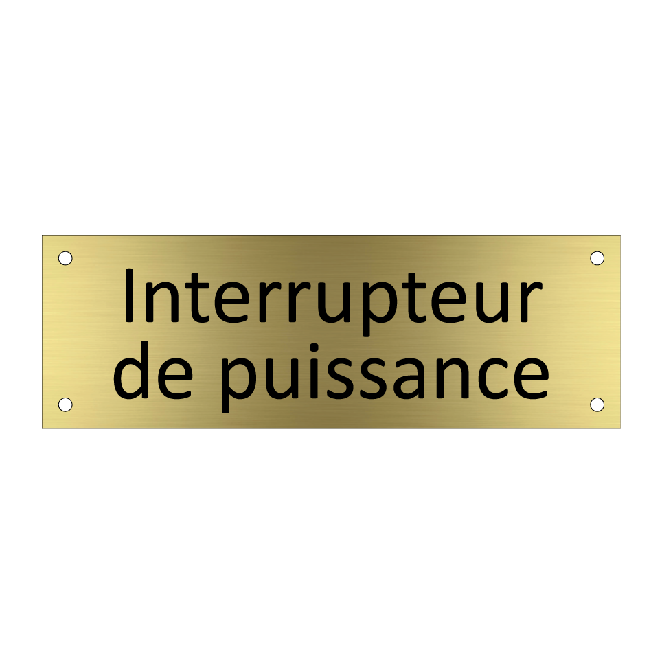 Ce panneau est disponible en Aluminium Brossé, Aluminium Aspect Laiton, Plastique et Autocollant.