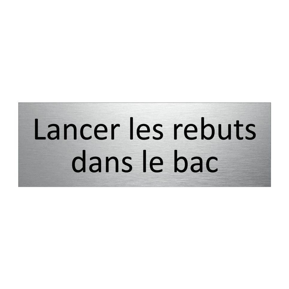Panneau d'information avec le texte Lancer les rebuts dans le bac.