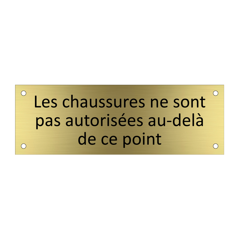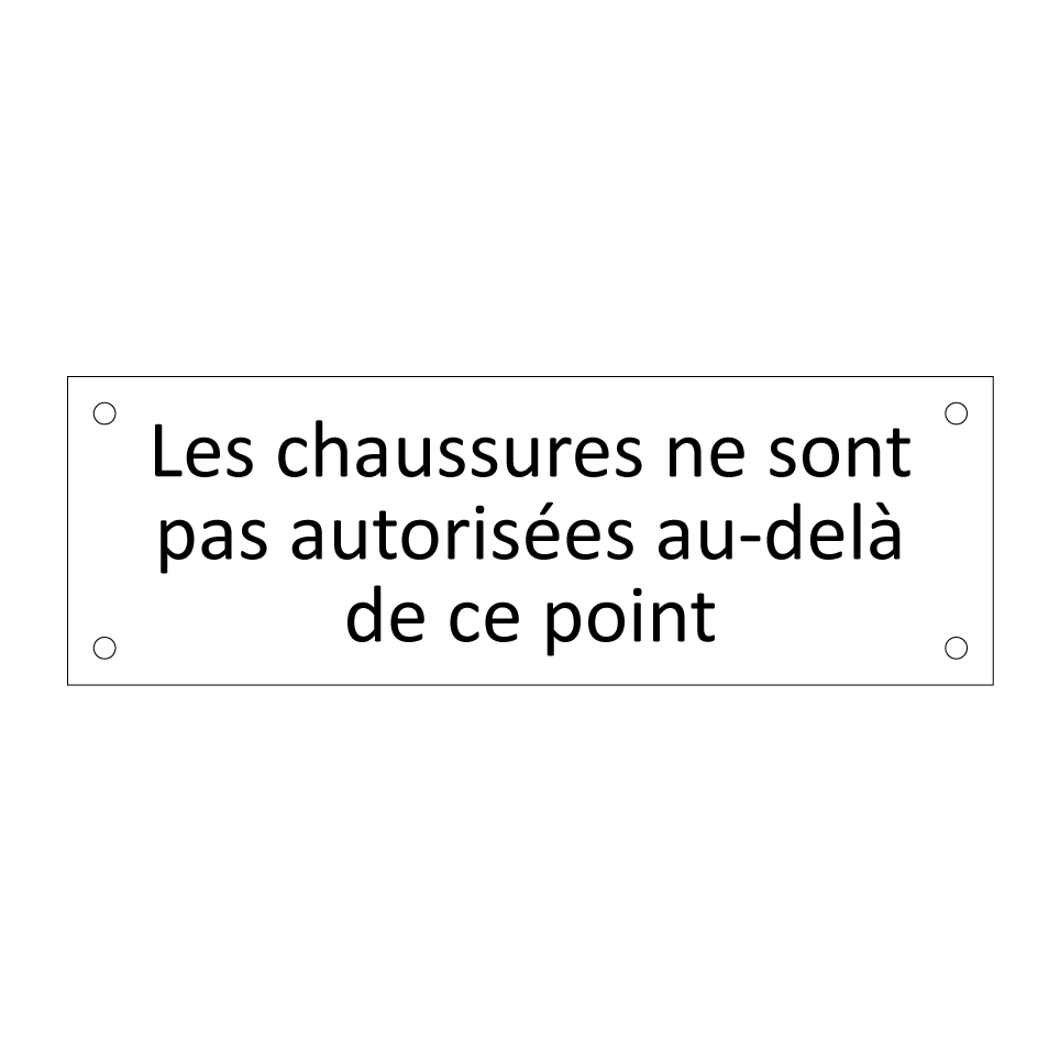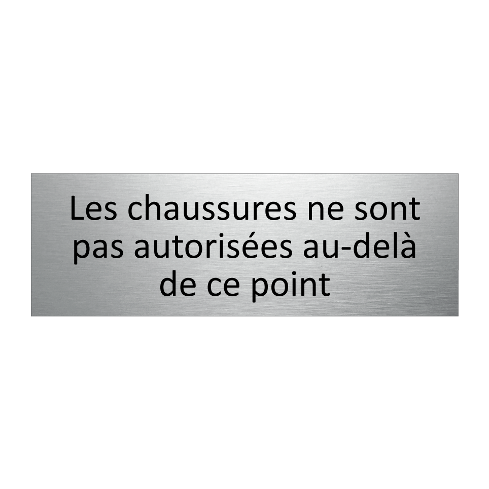 Panneau d'information avec le texte Les chaussures ne sont pas autorisées au-delà de ce point.