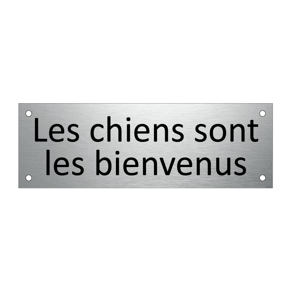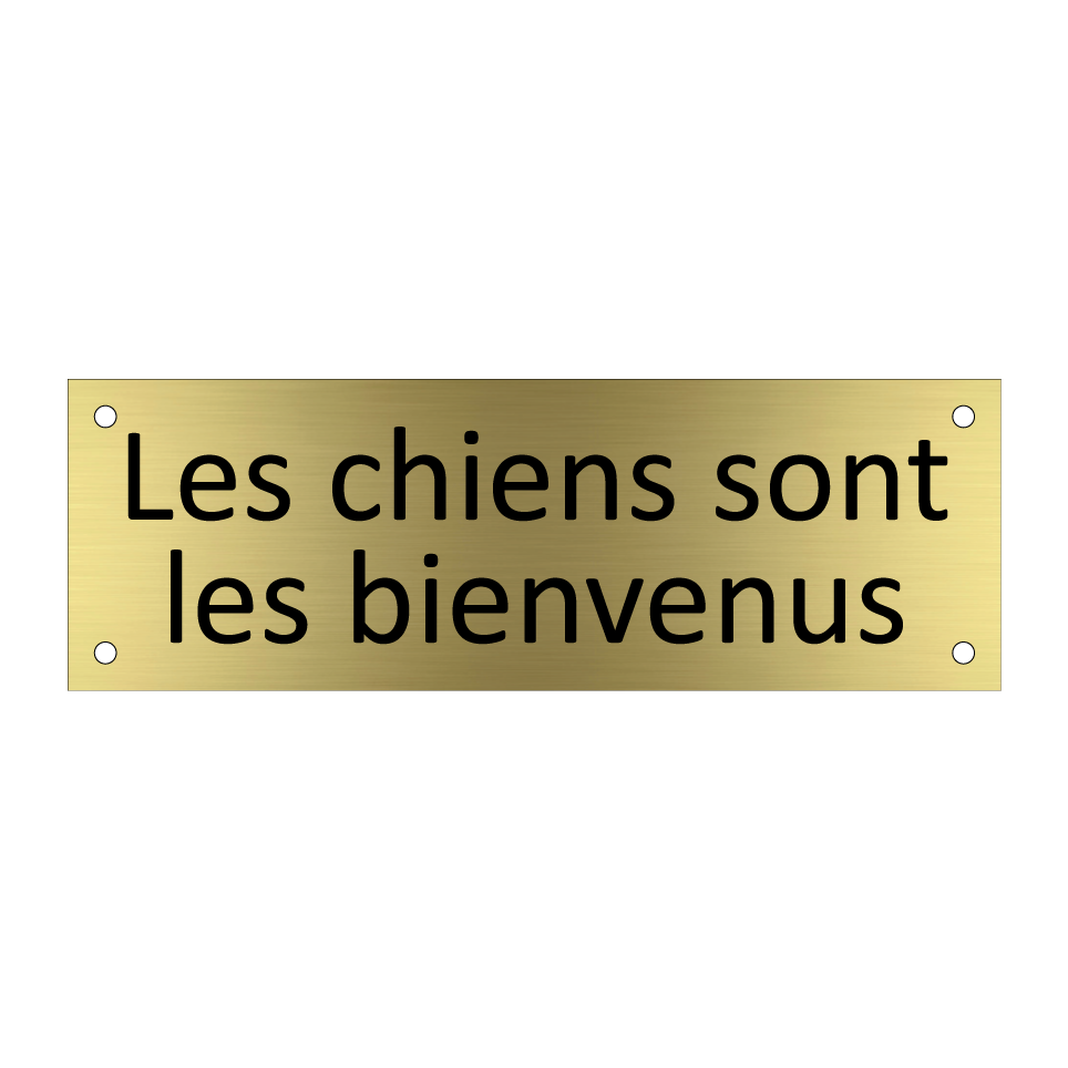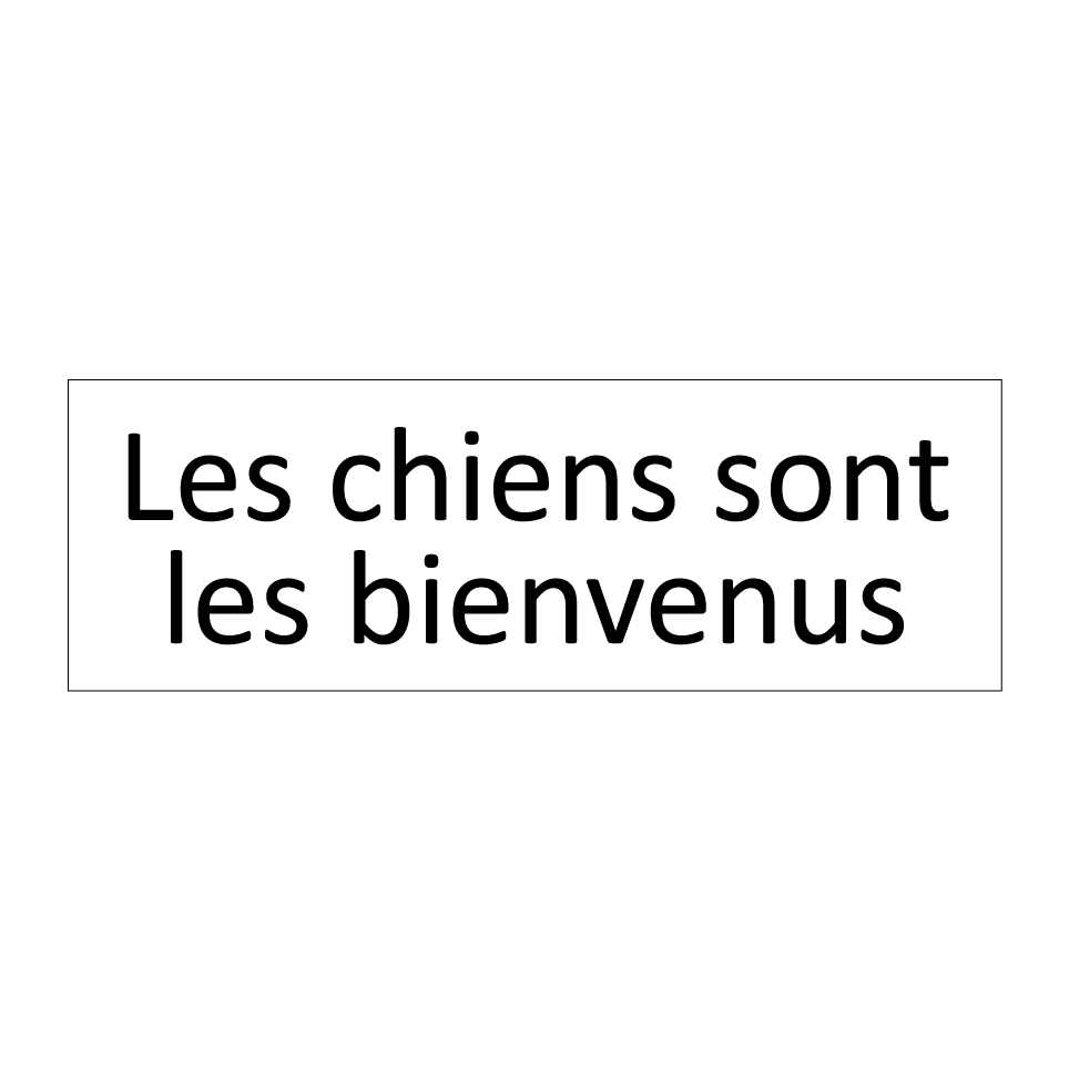 Panneau d'information avec le texte Les chiens sont les bienvenus.