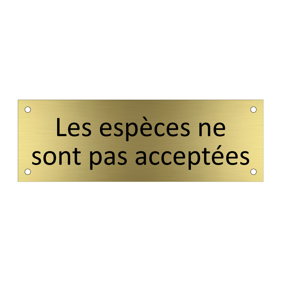 Panneau d'information avec le texte Les espèces ne sont pas acceptées.