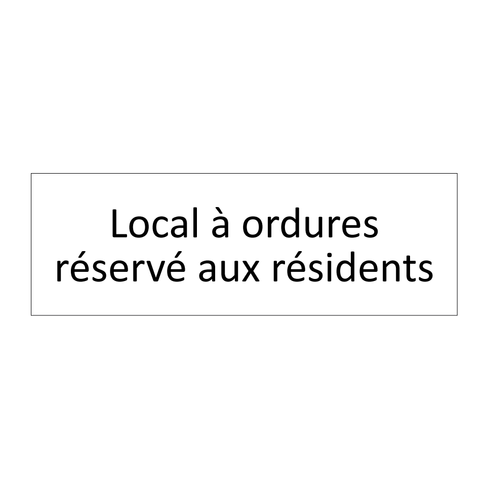Panneau d'information avec le texte Local à ordures réservé aux résidents.