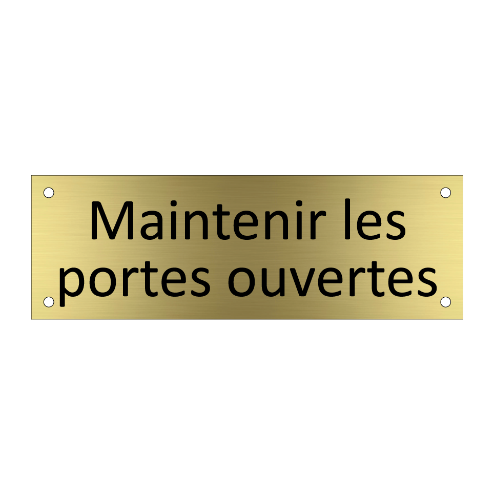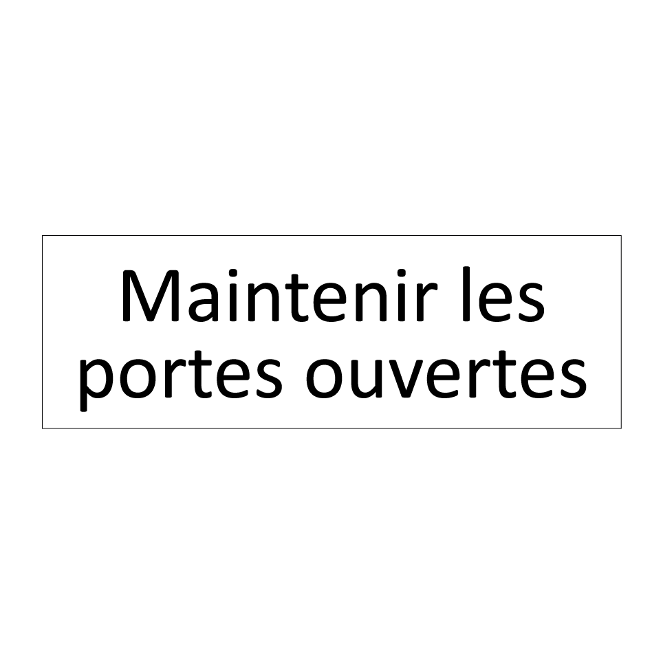 Panneau d'information avec le texte Maintenir les portes ouvertes.
