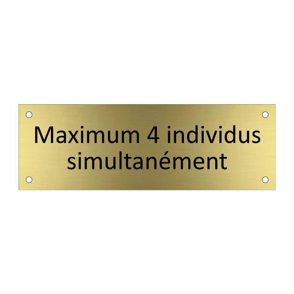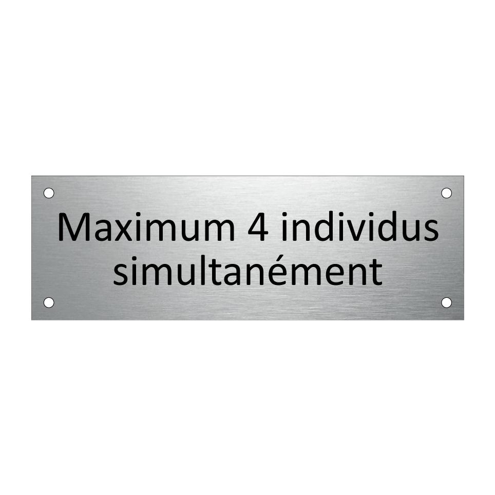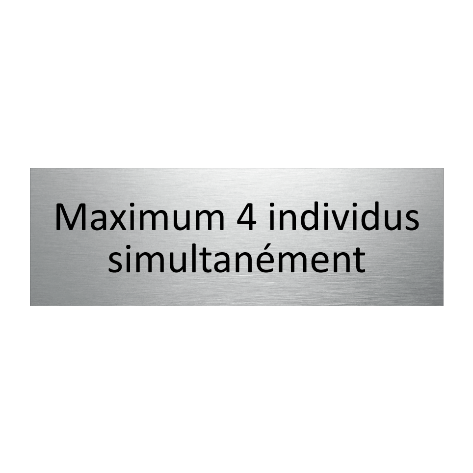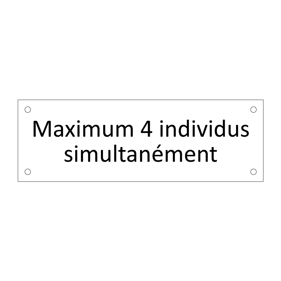 Panneau d'information avec le texte Maximum 4 individus simultanément.