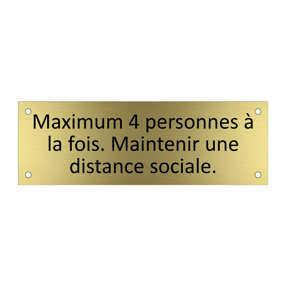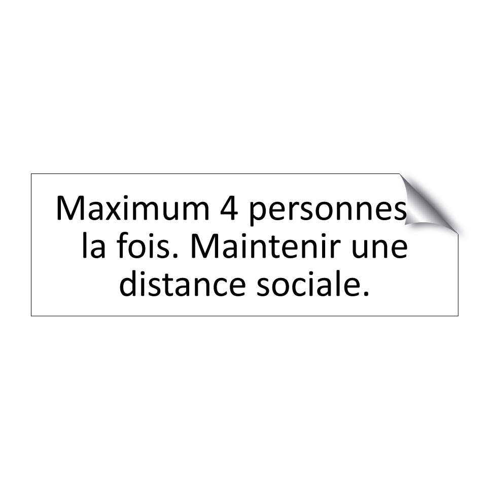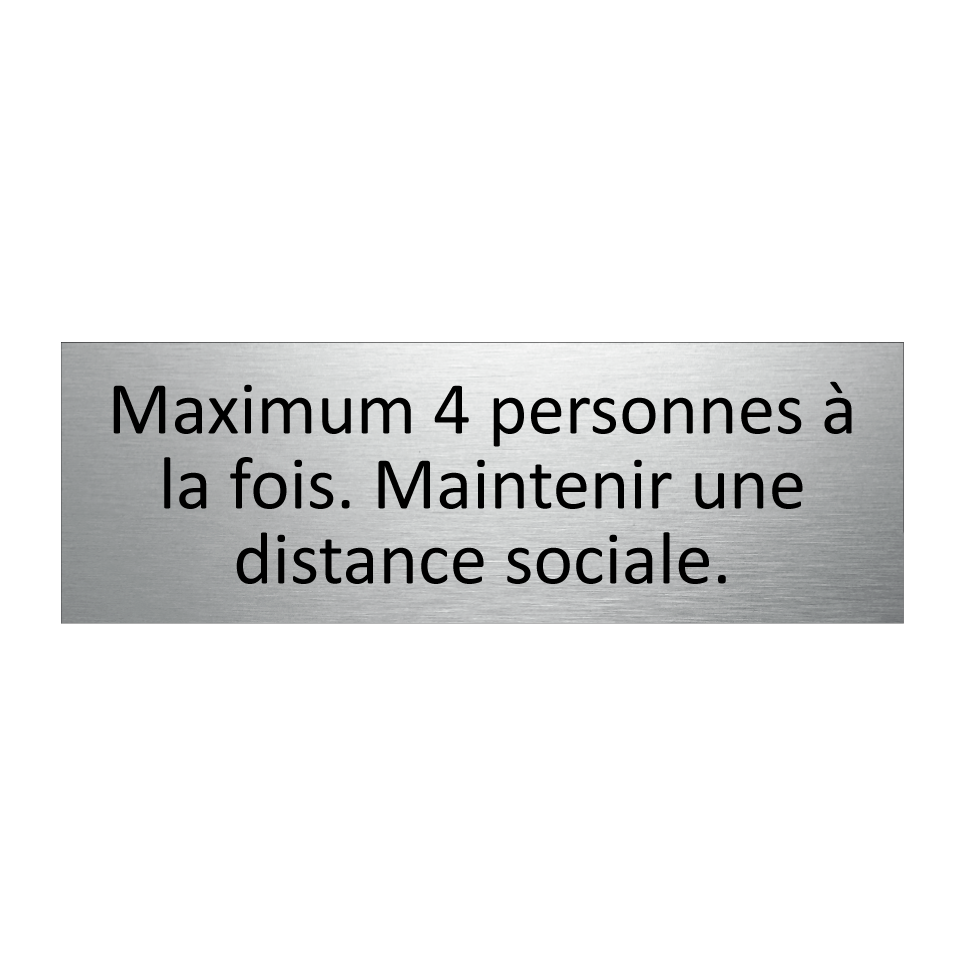 Panneau d'information avec le texte Maximum 4 personnes à la fois. Maintenir une distance sociale..