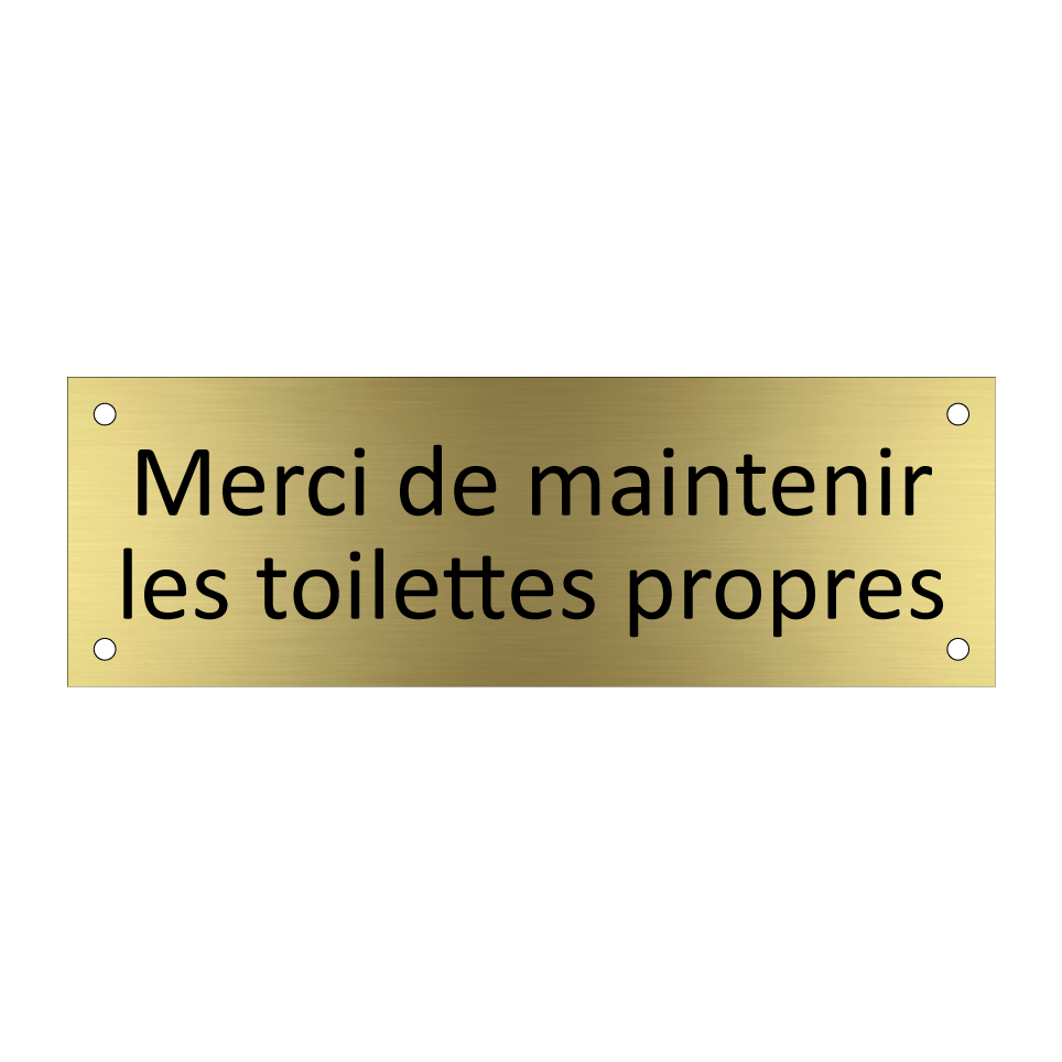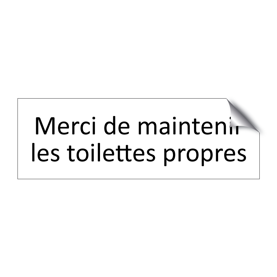Panneau d'information avec le texte Merci de maintenir les toilettes propres.