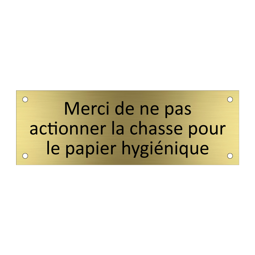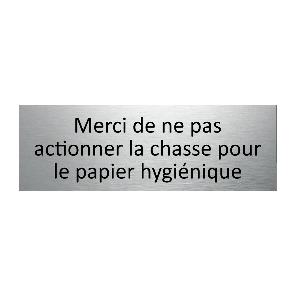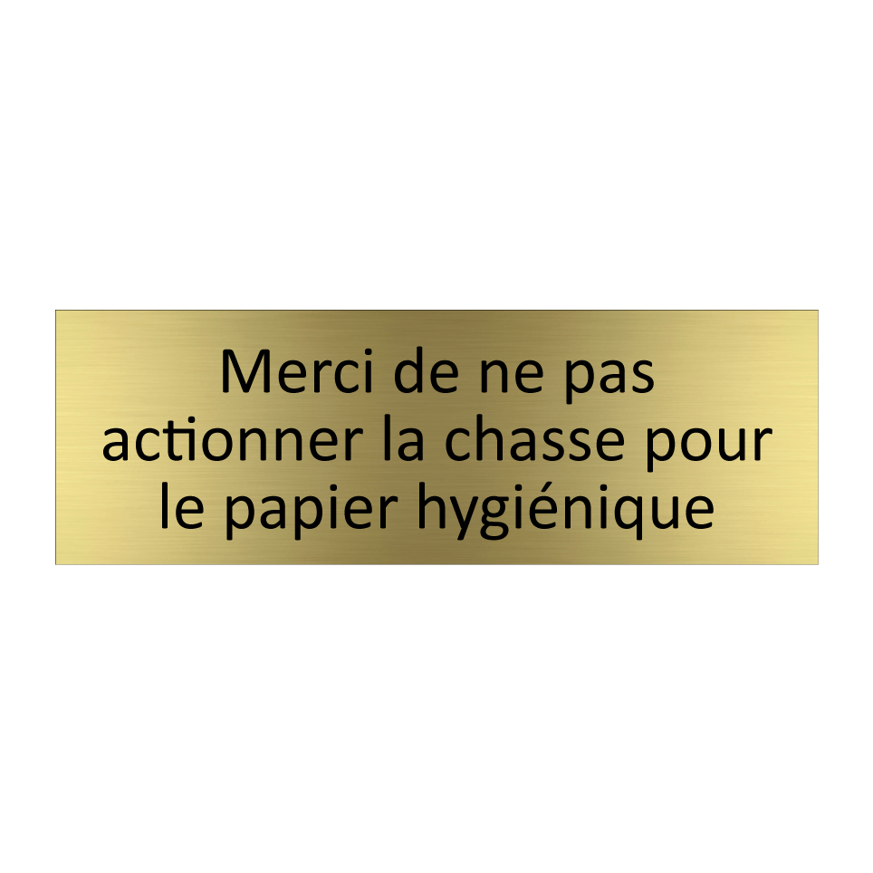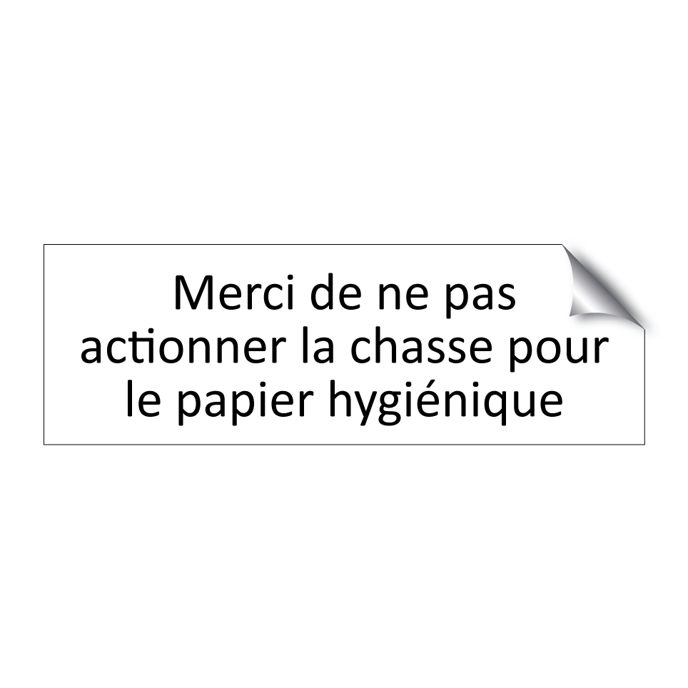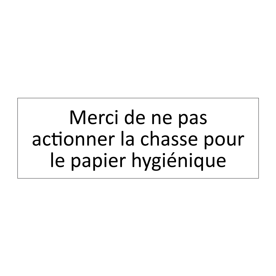 Panneau d'information avec le texte Merci de ne pas actionner la chasse pour le papier hygiénique.