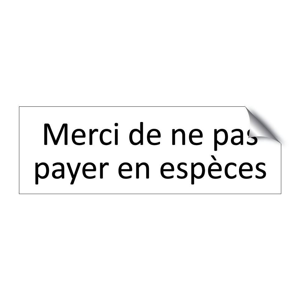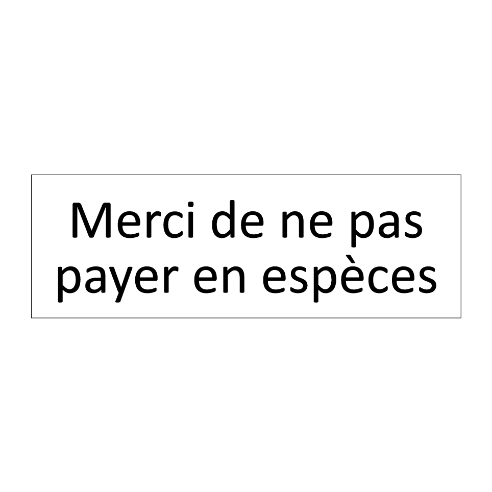 Panneau d'information avec le texte Merci de ne pas payer en espèces.