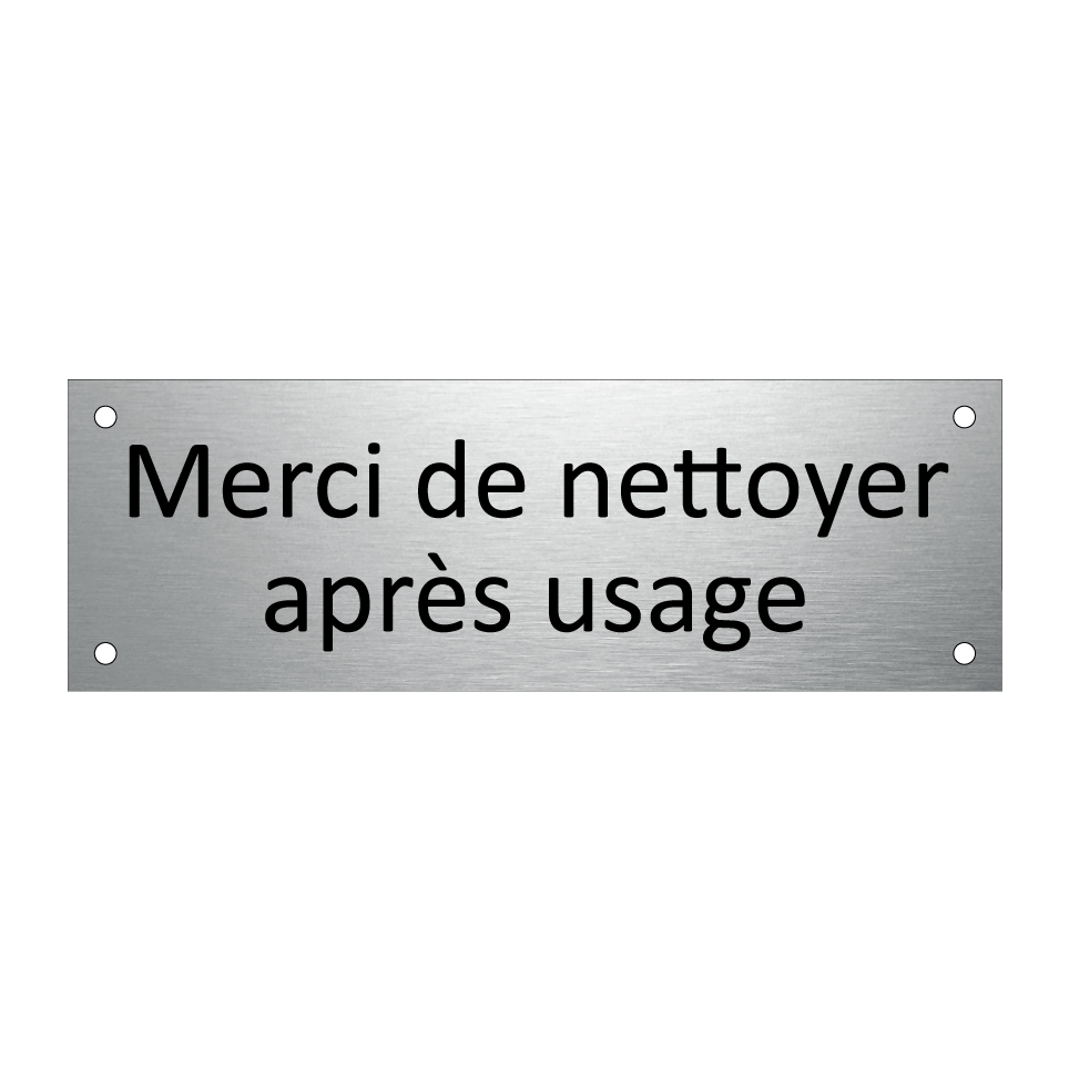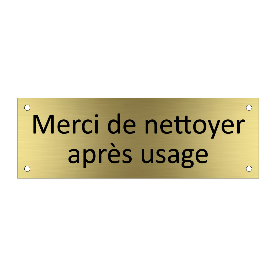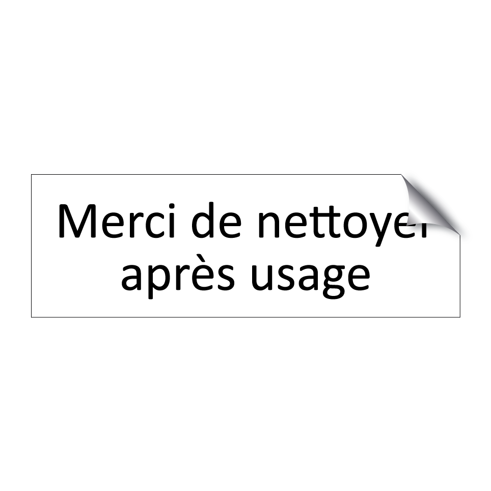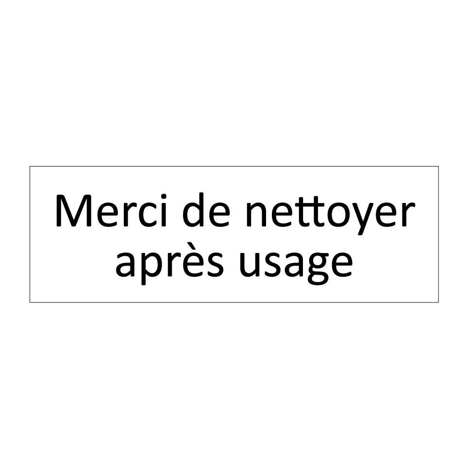 Panneau d'information avec le texte Merci de nettoyer après usage.
