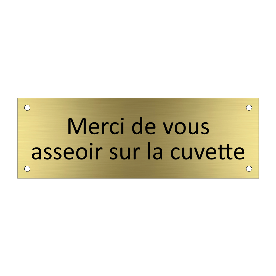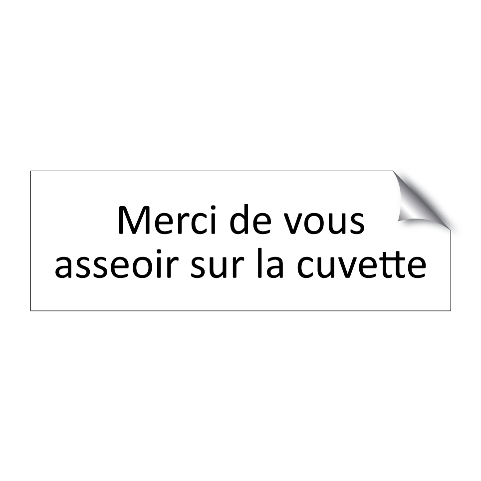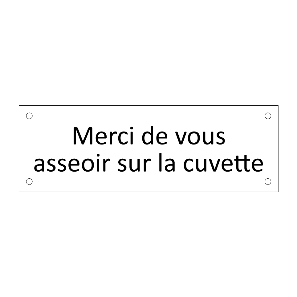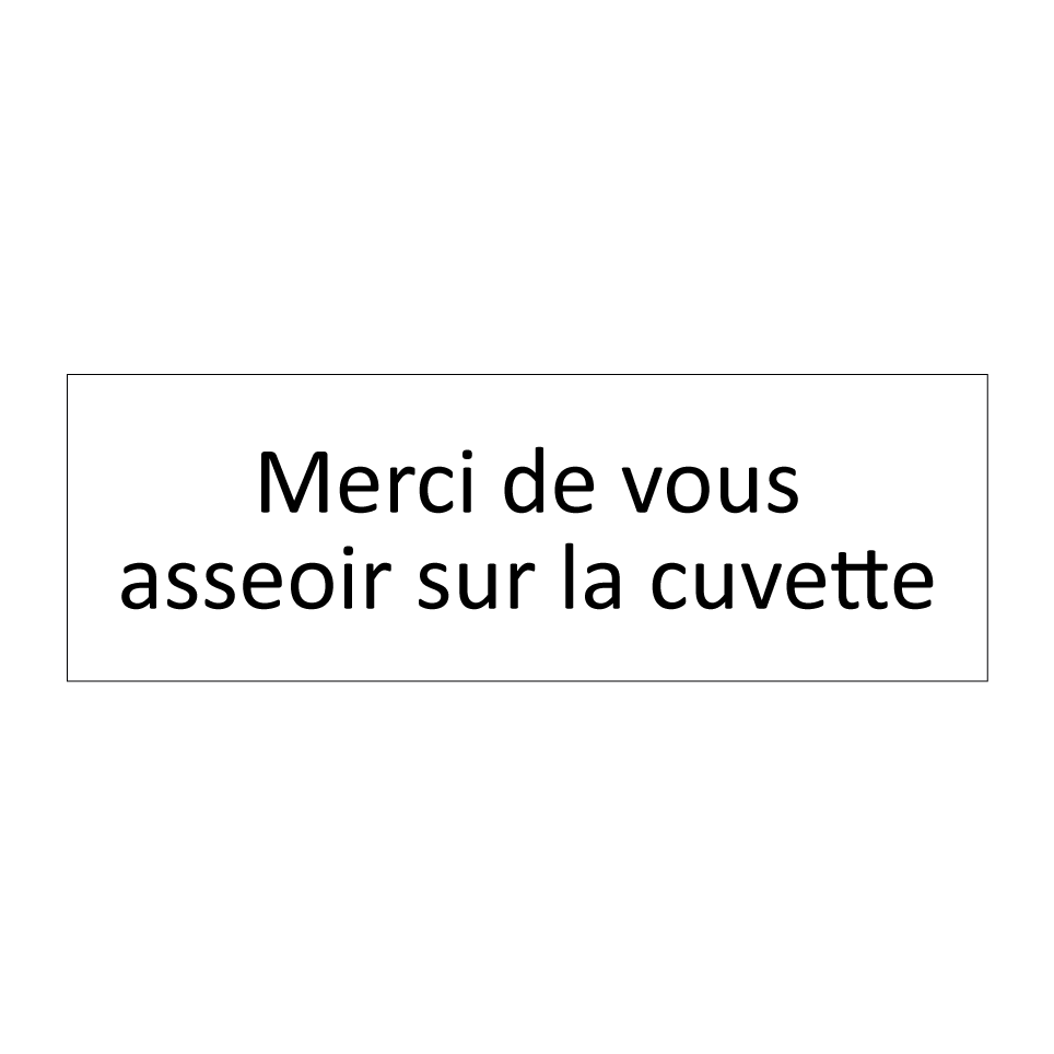 Panneau d'information avec le texte Merci de vous asseoir sur la cuvette.