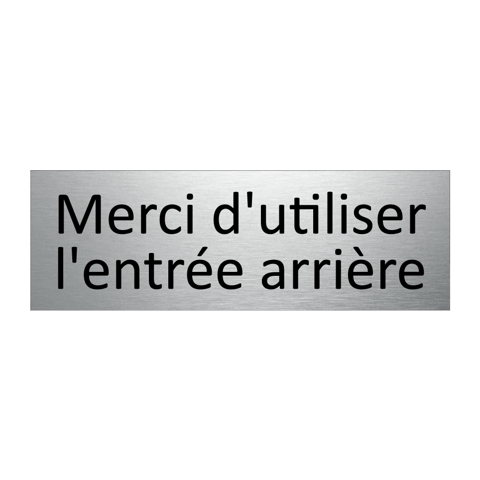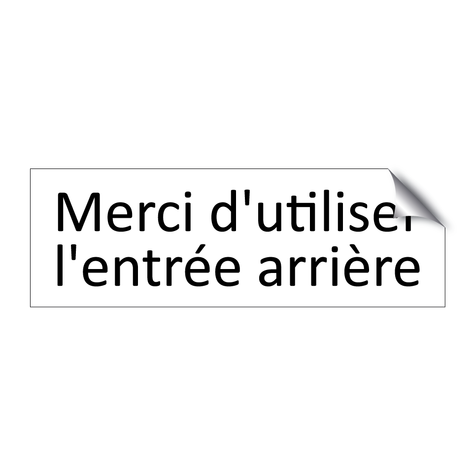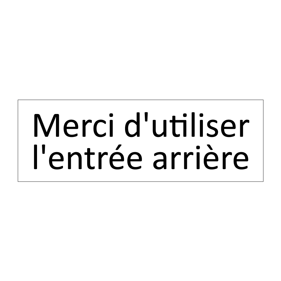 Panneau d'information avec le texte Merci d'utiliser l'entrée arrière.