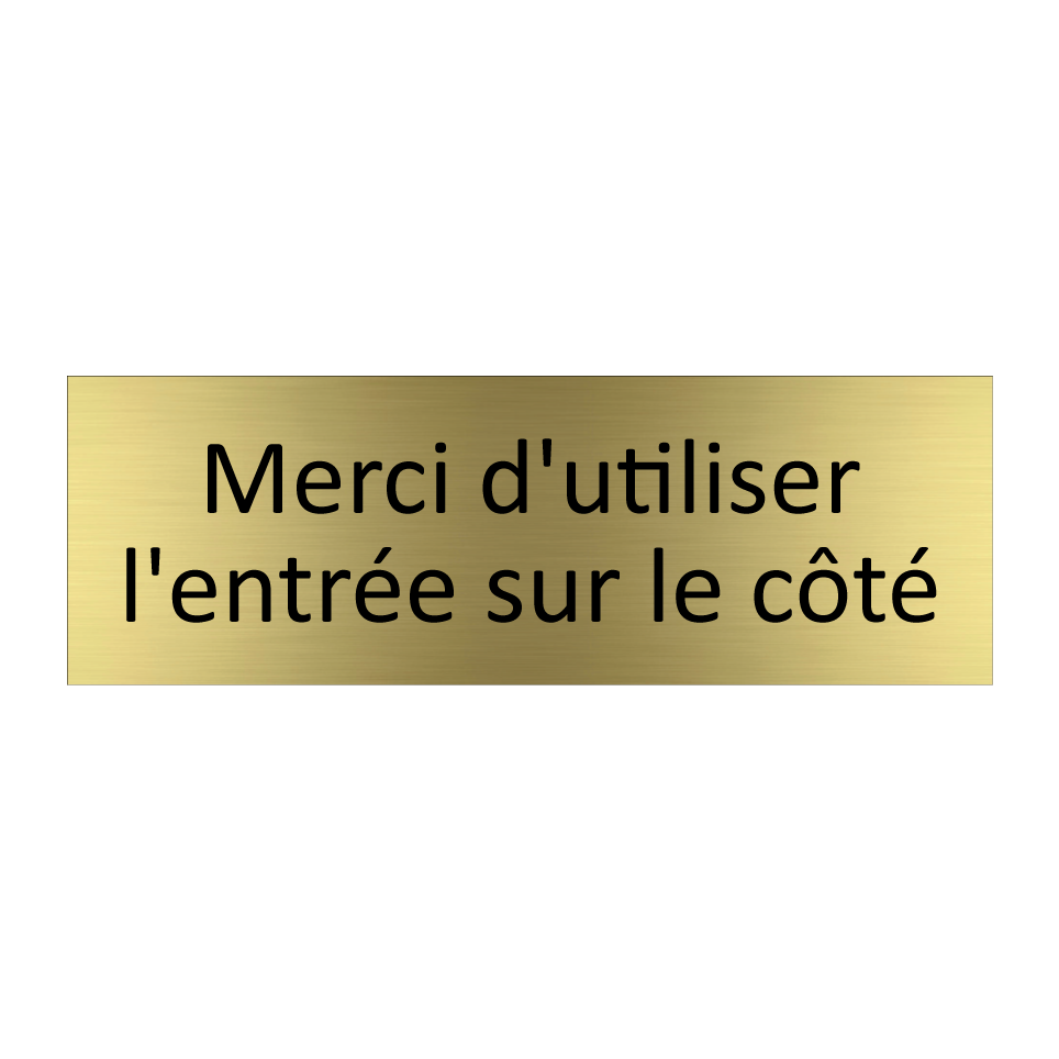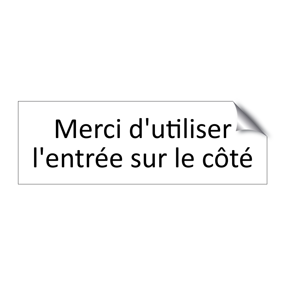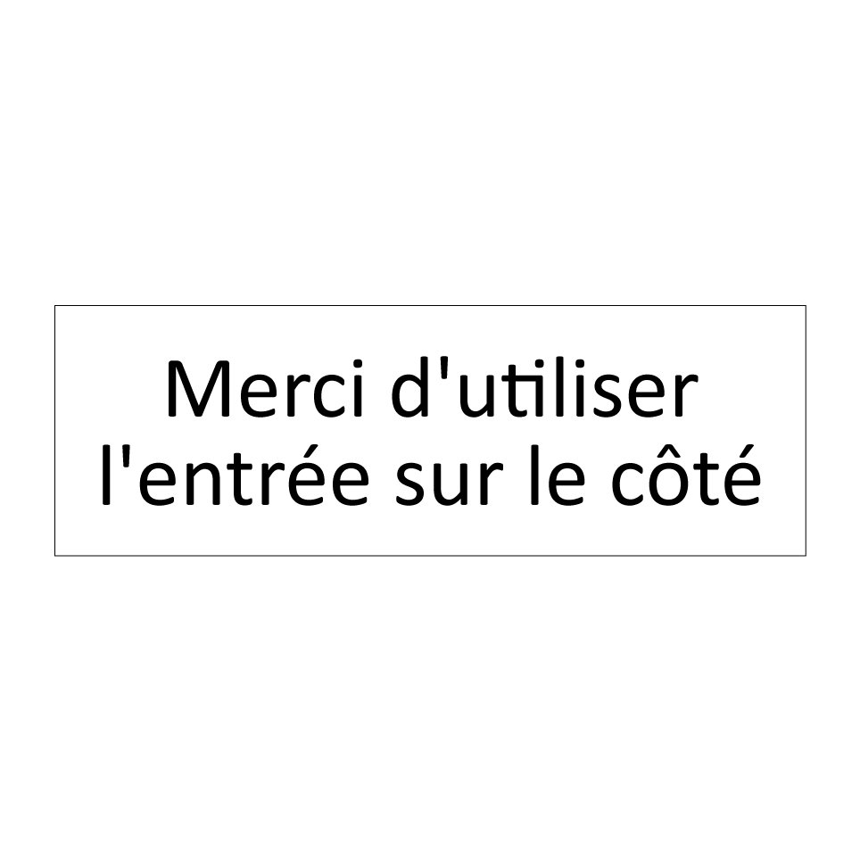 Panneau d'information avec le texte Merci d'utiliser l'entrée sur le côté.