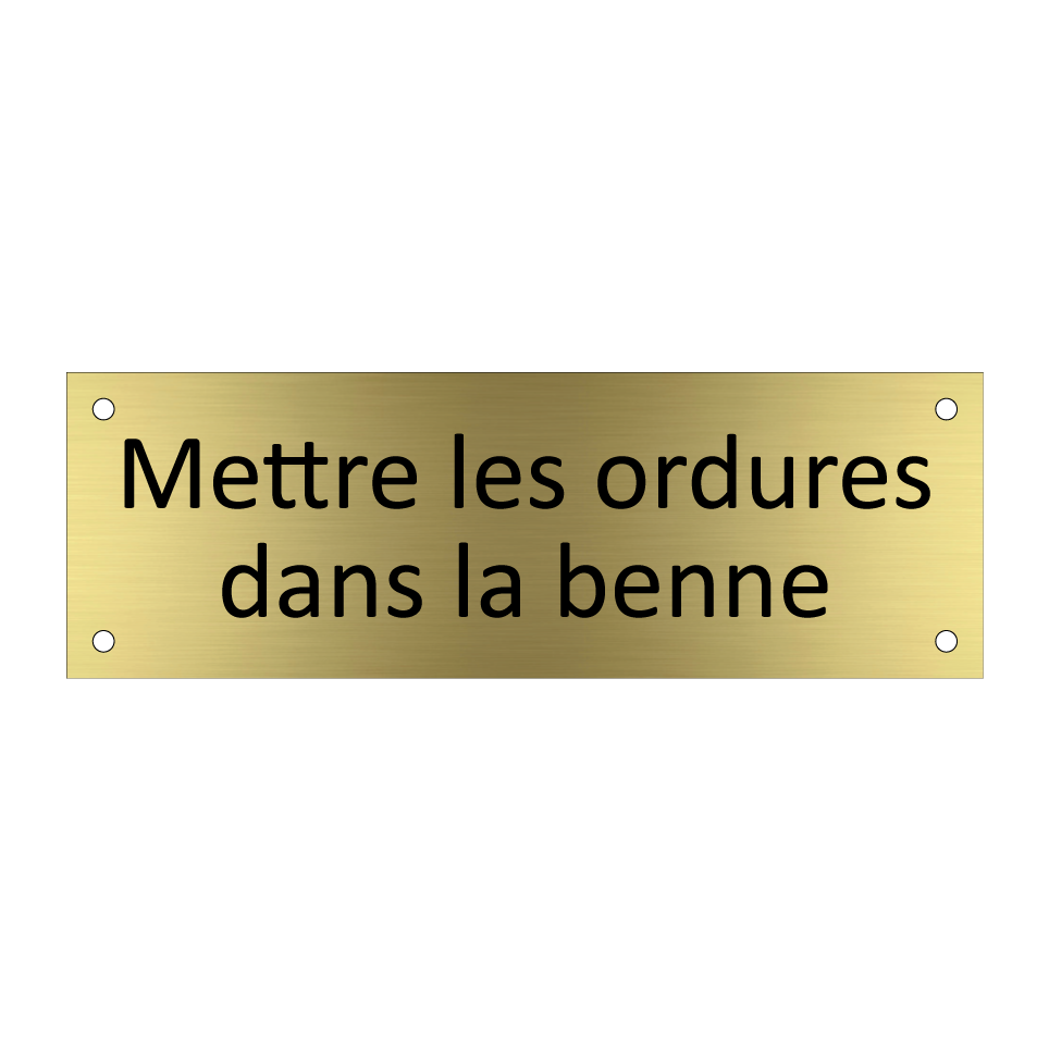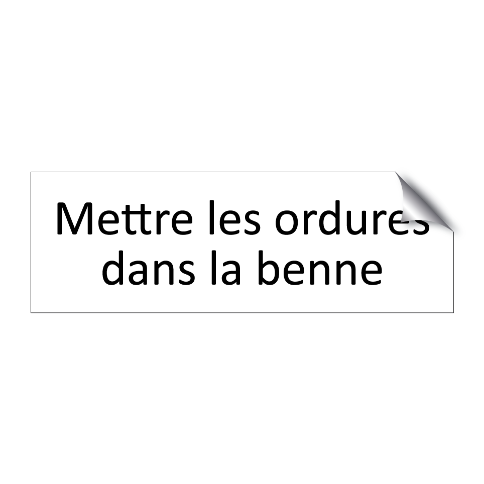 Panneau d'information avec le texte Mettre les ordures dans la benne.