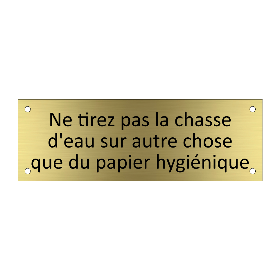 Ce panneau est disponible en Aluminium Brossé, Aluminium Aspect Laiton, Plastique et Autocollant.