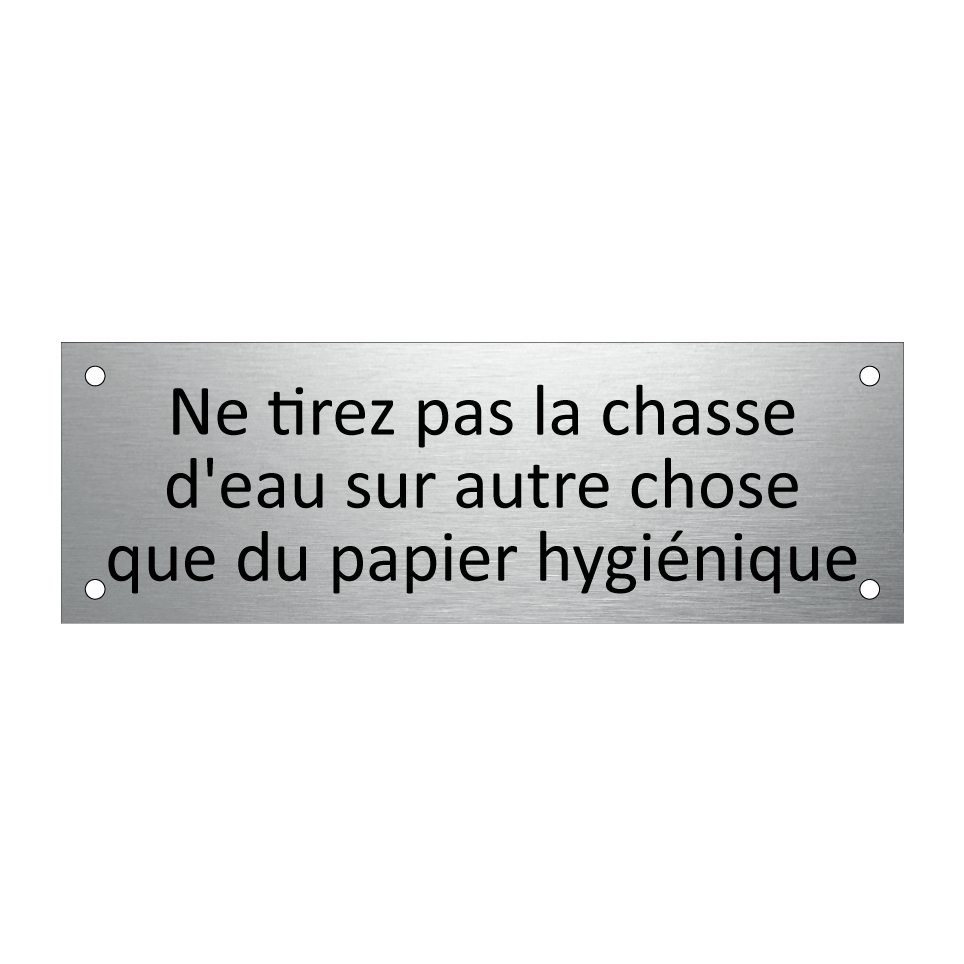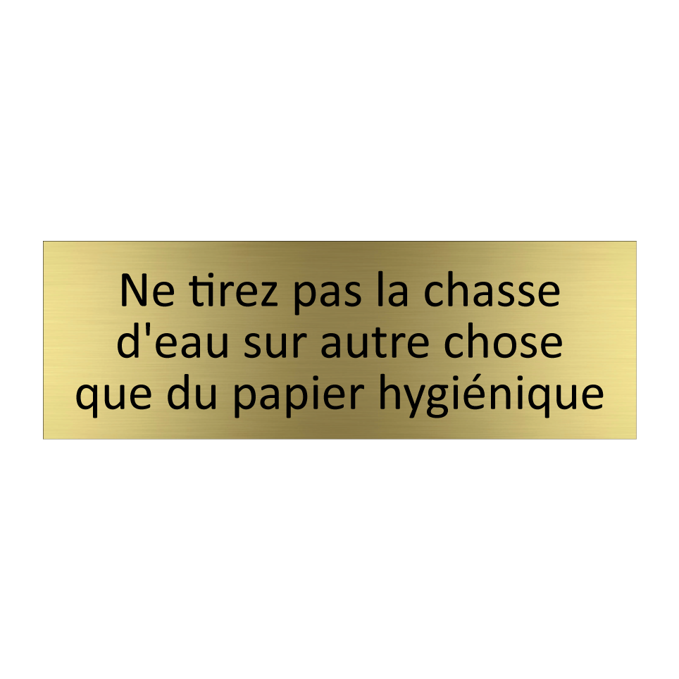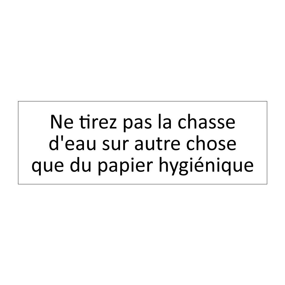 Panneau d'information avec le texte Ne tirez pas la chasse d'eau sur autre chose que du papier hygiénique.