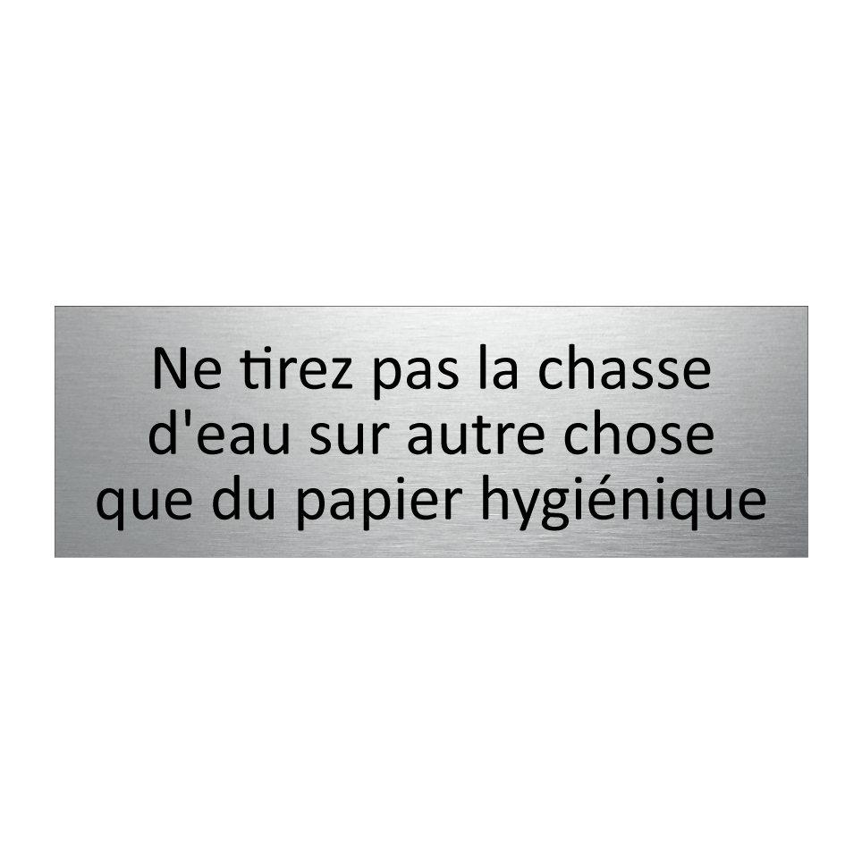 Cette pancarte est idéale pour les toilettes publiques, les bureaux ou les établissements commerciaux où il est essentiel de rappeler aux utilisateurs de ne jeter que du papier hygiénique dans les toilettes. Elle sert à prévenir les obstructions et à maintenir un système de plomberie fonctionnel. Placez-la à proximité des toilettes ou sur la porte pour une visibilité optimale. Ce panneau informatif est un outil indispensable pour garantir le bon usage des installations sanitaires et éviter les désagréments liés aux mauvaises pratiques.
